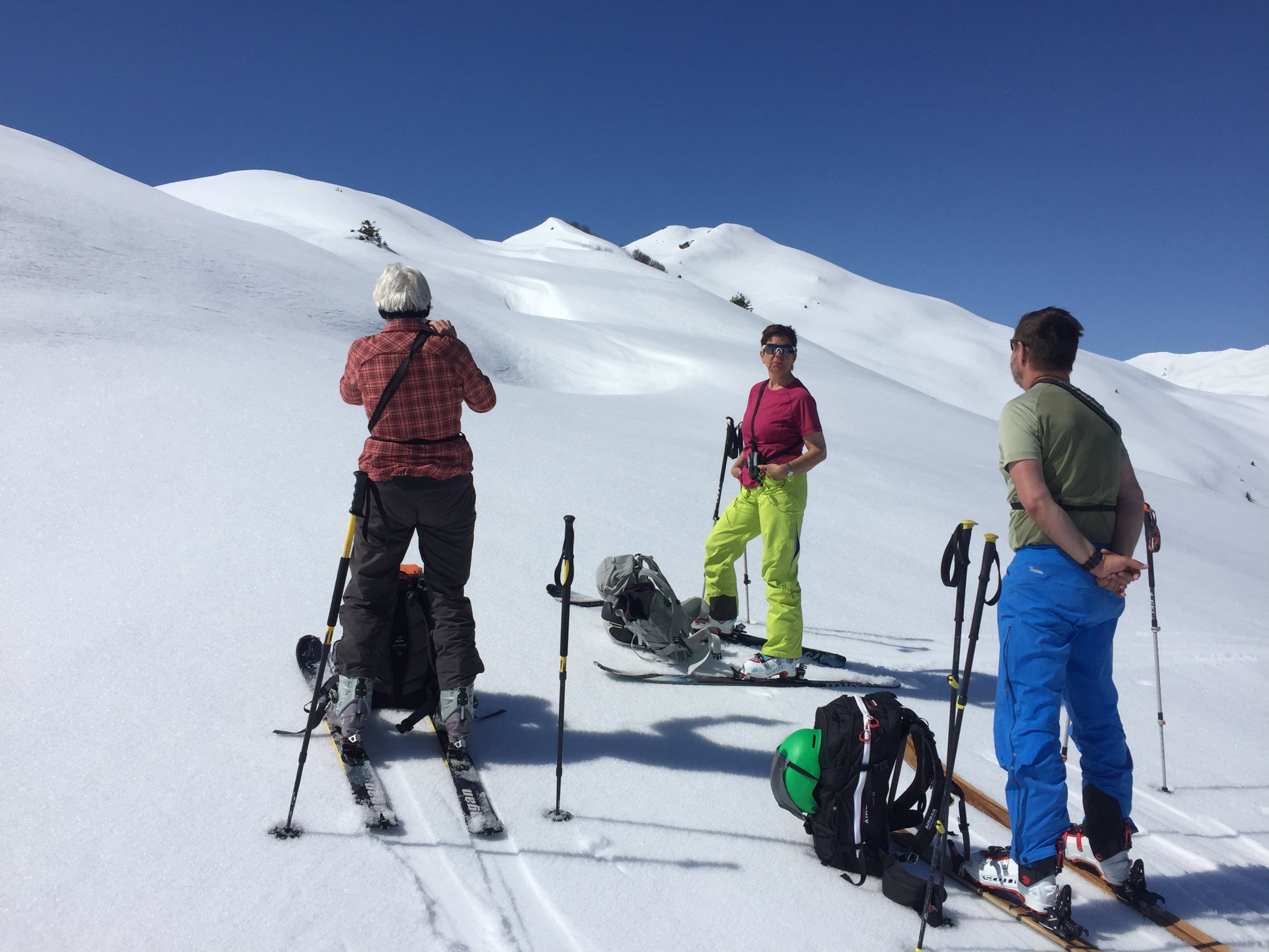 Aufstieg um 8'45 ab Obertschappina auf der Piste. Griffiger Sulz!