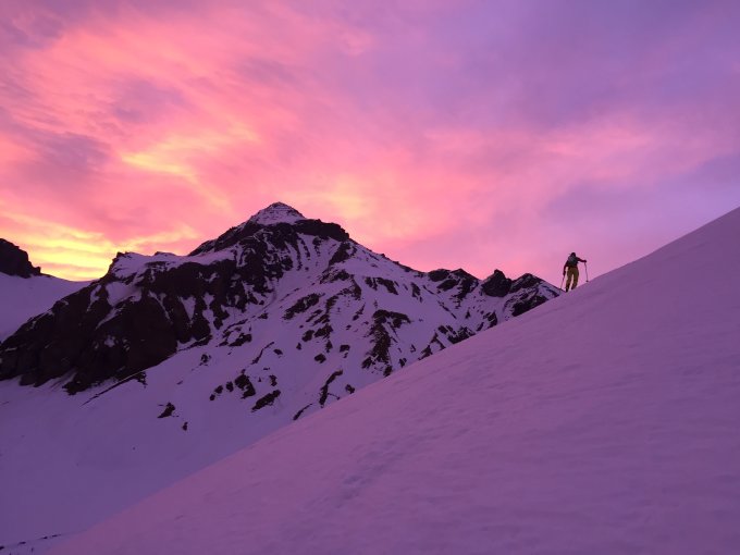 Ab PP gefrorene Schneedecke bis zum Gipfel. Die Schlüsslstelle kann mit Ski im Auf- und Abstieg gemacht werden.