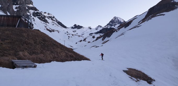 Schon bald müssen die Ski sicher etwas getragen werden in Richtung Lucknerhaus, die Lucknerhütte war noch geschlossen.