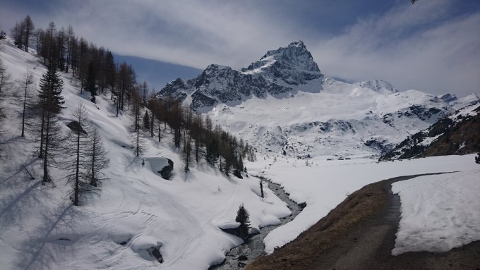 Sehr wenige Tragestellen (noch) auf der Waldstrasse. Aufstieg tadellos ohne Harscheisen. Gipfelaufstieg guter Trittschnee mit Spur. Feiner Firn bei der Abfahrt, etwa um 12:30.