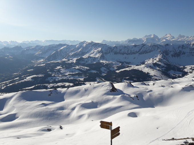 Abfahrt gegen 9 Uhr in bereits leicht aufgesulztem Schnee.