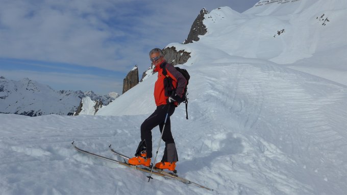 Der Südgratsattel der Erzbergspitze ist im Laufe der Jahre ein eigenständiges Skitourenziel geworden. Zu verlockend ist der herrliche Osthang mit Tälchen, Kuppen und Mulden, hoch über dem Flexenpass. Steil ist der Auftakt und der Schluss und dazwischen sind auch gemütlichere Abschnitte Programm.