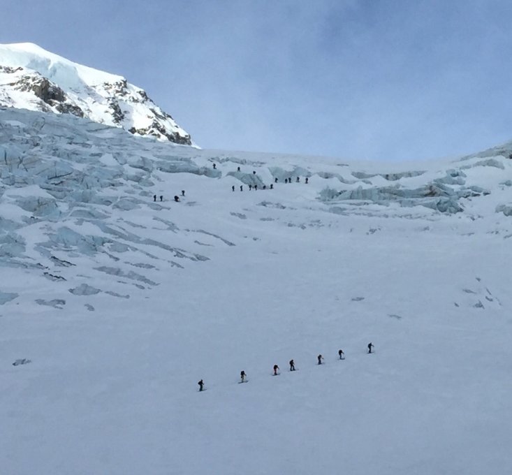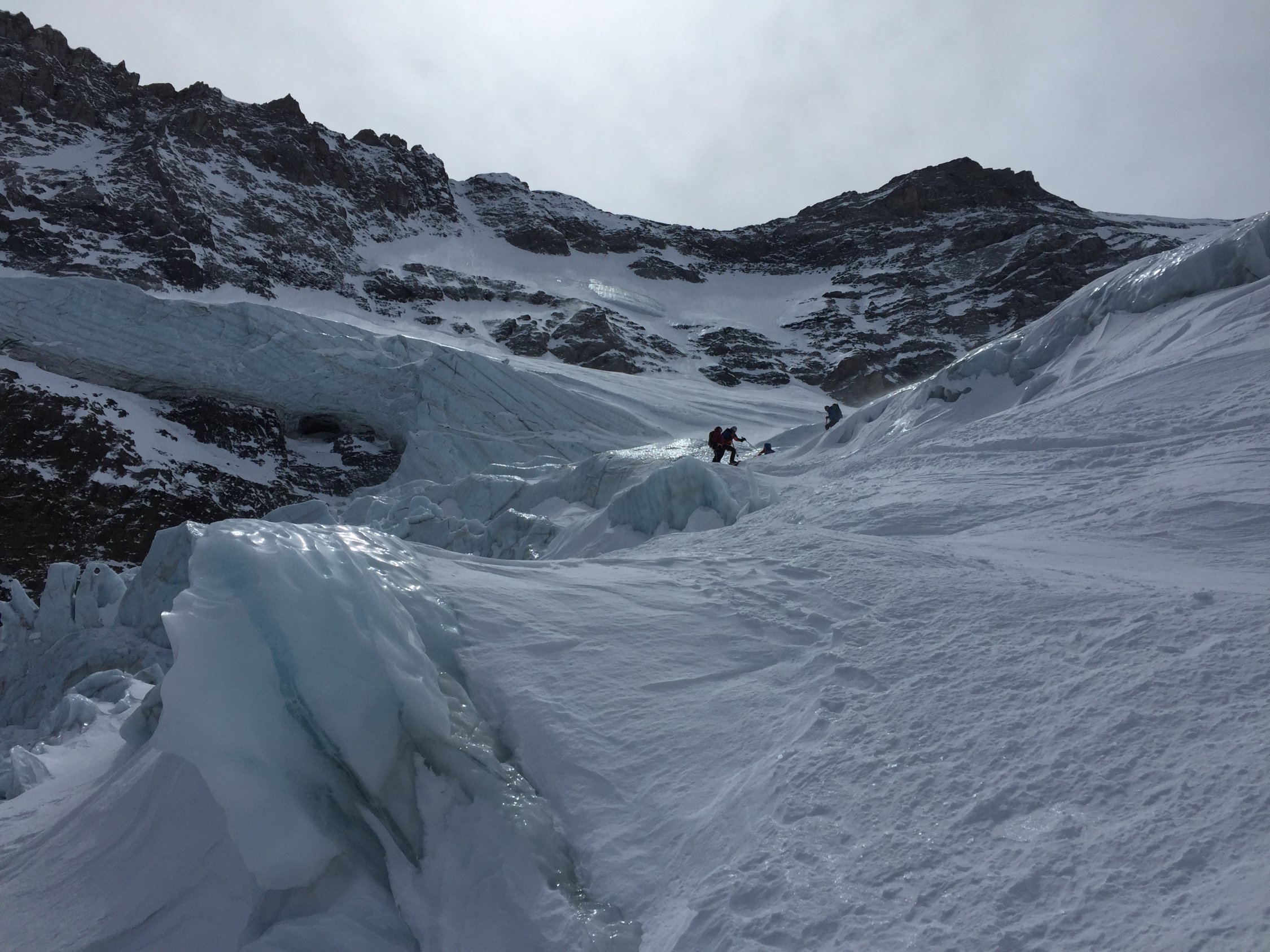Erster Bruch im Aufstieg links umgehen. Wir waren nach den Gruppen, die von der Hütte gestartet sind dort. Deshalb war die Spur ausgezeichnet. Wendeplateaus / Tussiturns inklusive. Danke dem Bergführer.