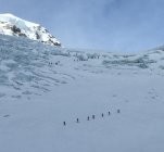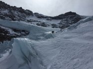 Insgesamt eher harte Verhältnisse oben. Viel Wind. Schleierwolken. Wir sind um 12h am Gipfel gestartet.