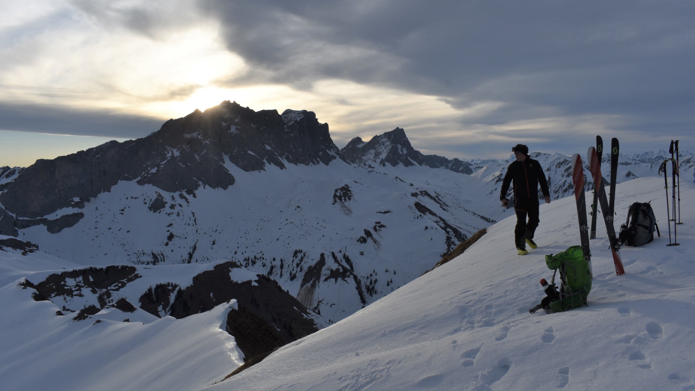 Im Gipfelbereich ca. 20 km Südwind der das aufweichen des Schnees verzögerte.