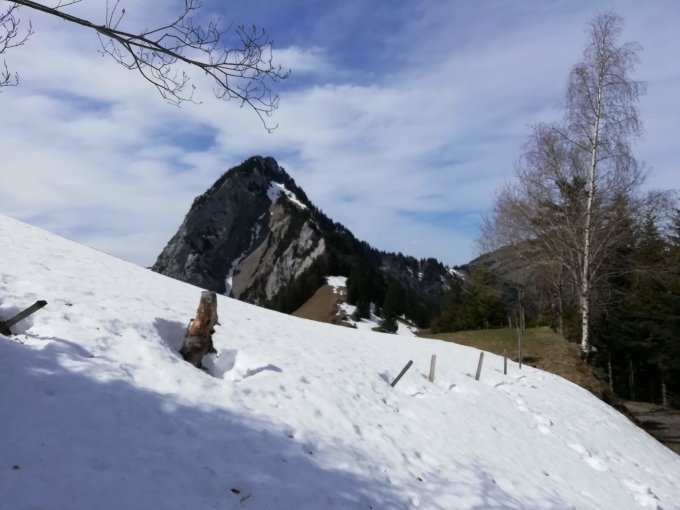 Ab Ober Timpel kleine Restschneemengen auf dem Weg. Das erste Stück Ostgrat ist schon Schneefrei ab 1400m beginnt das erste Schneefeld (Gute Gespurt) der Schnee zieht sich bis zur Kletterstelle nach der Kletterstelle ist der Grat bis auf ein paar kleine Flecken Schneefrei. Die Südseite ist ebenso bis auf ein paar Flecken Schneefrei. Auf dem Weg zwischen Ochsenboden Bärenfallen ist Stellenweise ein bisschen viel Laub auf dem Weg
