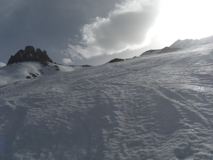 Die ganze Route ist noch durchgehend mit Ski besteig- und befahrbar.