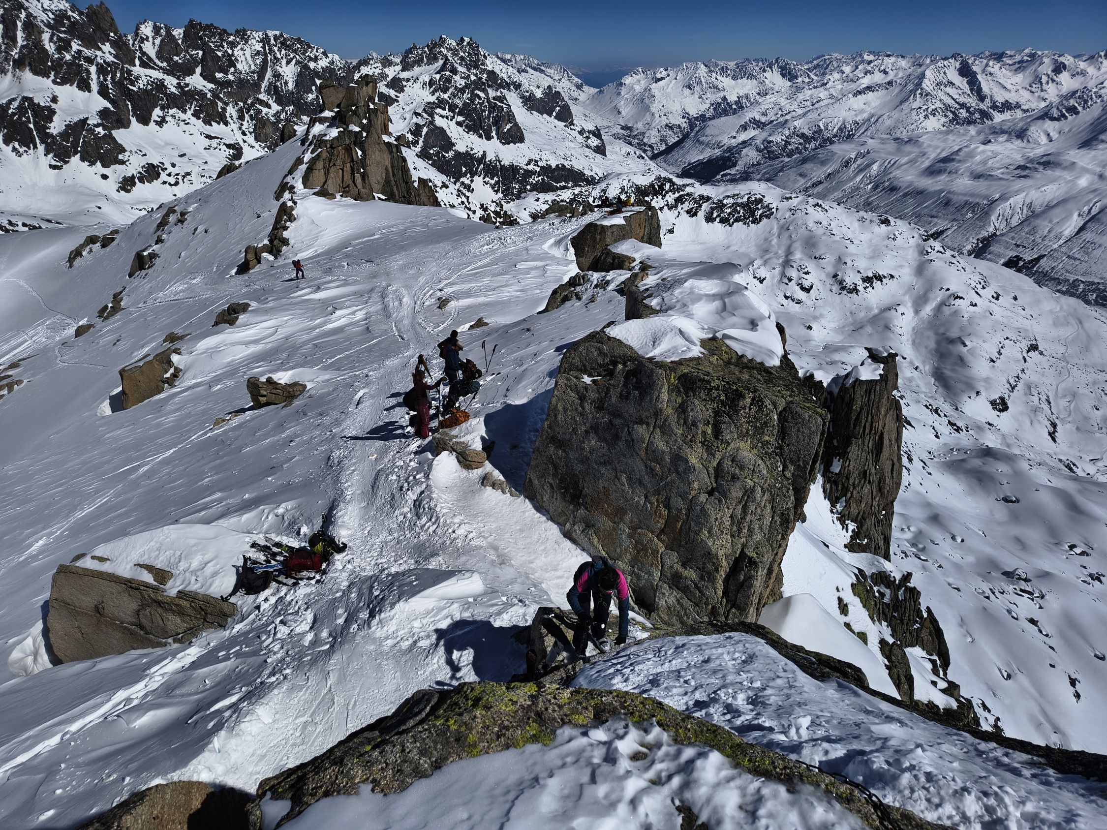 Geschlossene Schneedecke ab Realp, Aufstieg ohne Harscheisen, Gipfelaufschwung problemlos ohne Steigeisen machbar (Kette oder Umgehung des Felsblocks).