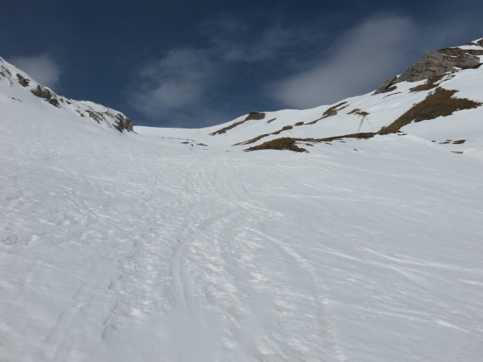 gute Schneedecke. Der Sulzschnee ist nicht sehr tief. Gut fahrbar.