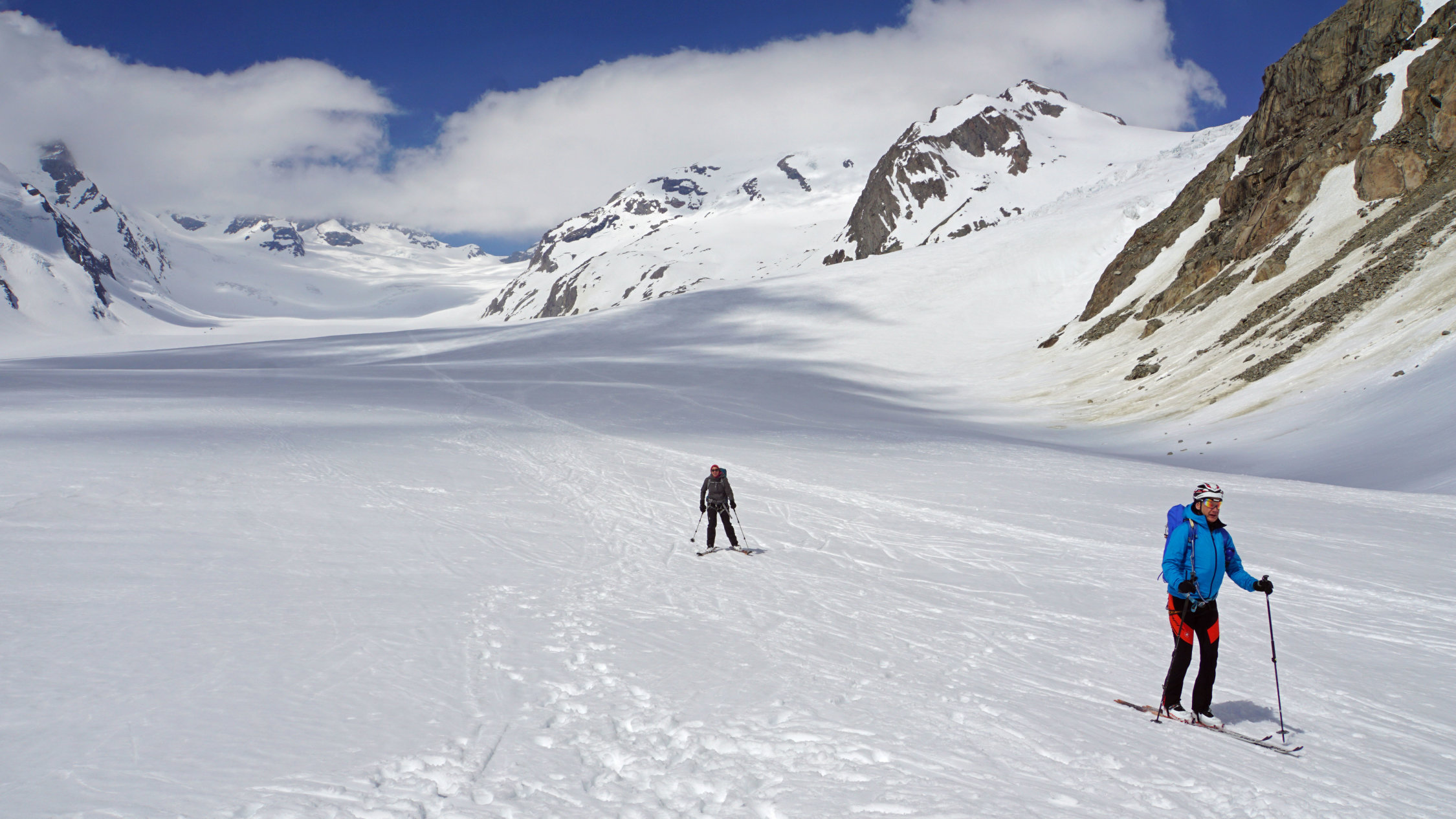 Sichere und gute Verhältnisse am Berg. Ab dem Skidepot waren keine Steigeisen nötig und die Felsen gut begehbar. DIe Abfahrt über den Südhang bei noch arten Sulzschnee nahezu perfekt.