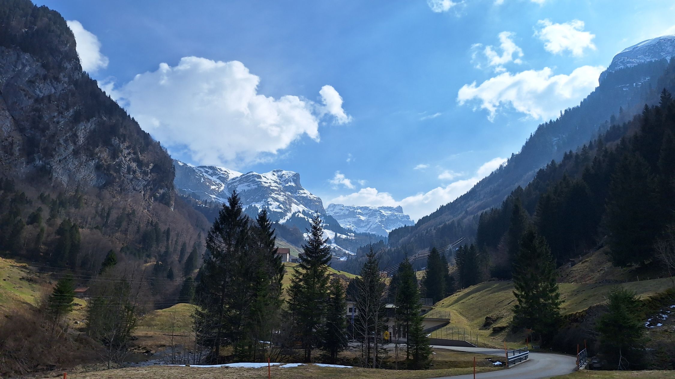 Die letzten 700m auf der Strasse zu Fuss wie am Morgen zum Parkplatz bei der Winter Barriere. Diesen Fussmarsch macht mann gerne bei diesen perfekten Bedingungen und bei diesem Pulverschnee.