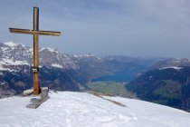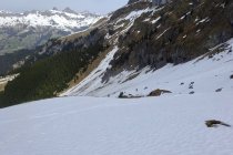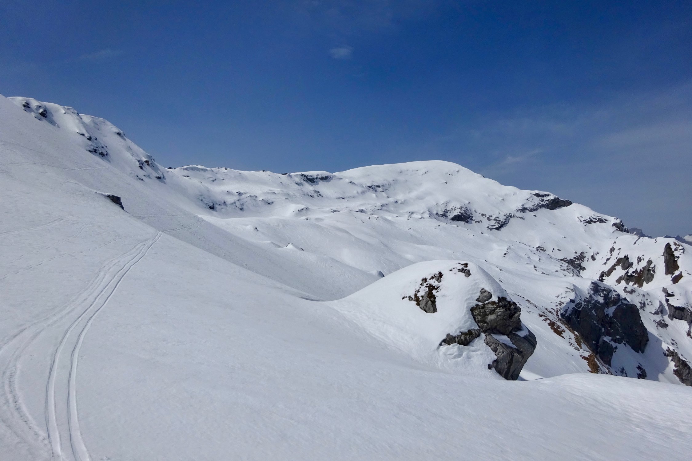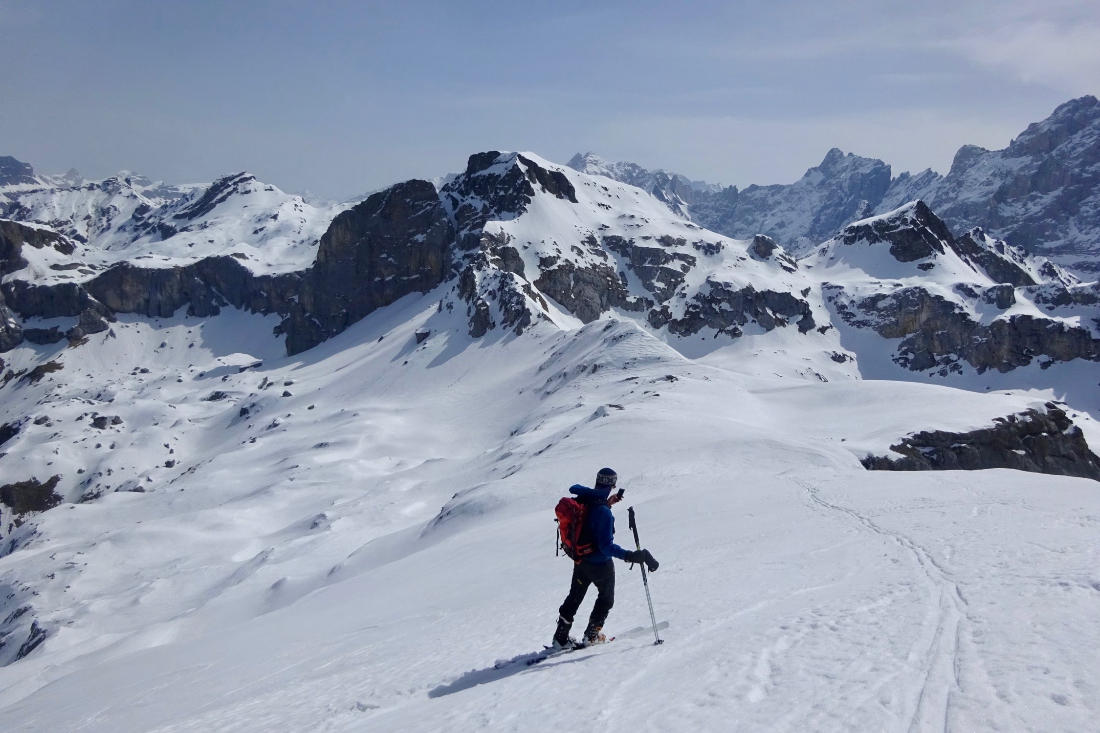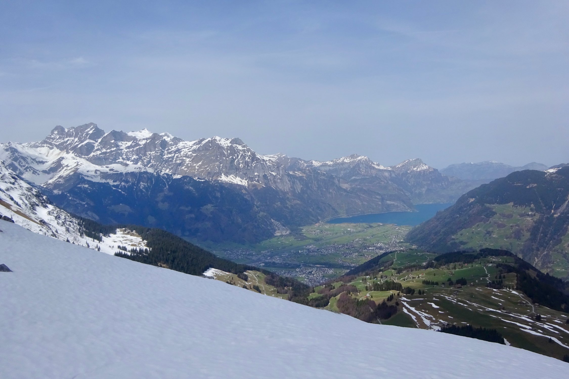 Abmarsch ab Haldi, Bergstation, 350 Höhenmeter zu Fuss. Aufgrund des Föhns schon in der unteren Hälfte im Steilhang vor der Stafelalp, 1788m Nassschnee, der jedoch gut hält. Nach der Stafelalp dann ganz leicht angefroren, aber auch im abflachenden Teil beim Butzenboden und Schorren nie Harscheisen nötig, obwohl dort dann der Schnee härter und griffig wurde, der Route folgen über den relativ schmalen Grat bei P. 2325 zum flachen Gipfeplateau. Tolle Rundsicht und tiefe Einblicke ins Reusstal. Gleiche Route zurück, der Steilhang unterhalb der Stafelalp ist um die Mittagszeit mit Vorsicht zu befahren, kleine Nassschneepakete in der obersten Schicht gleiten bei diesen Temperaturen bei jedem Schwung ab. Der Schnee reicht beim flachen Oberfeld in der Ebene noch bis ca. 1350m hinunter. Ski via Billerberg zurück zur Seilbahnstation tragen (ca. 45 min.).