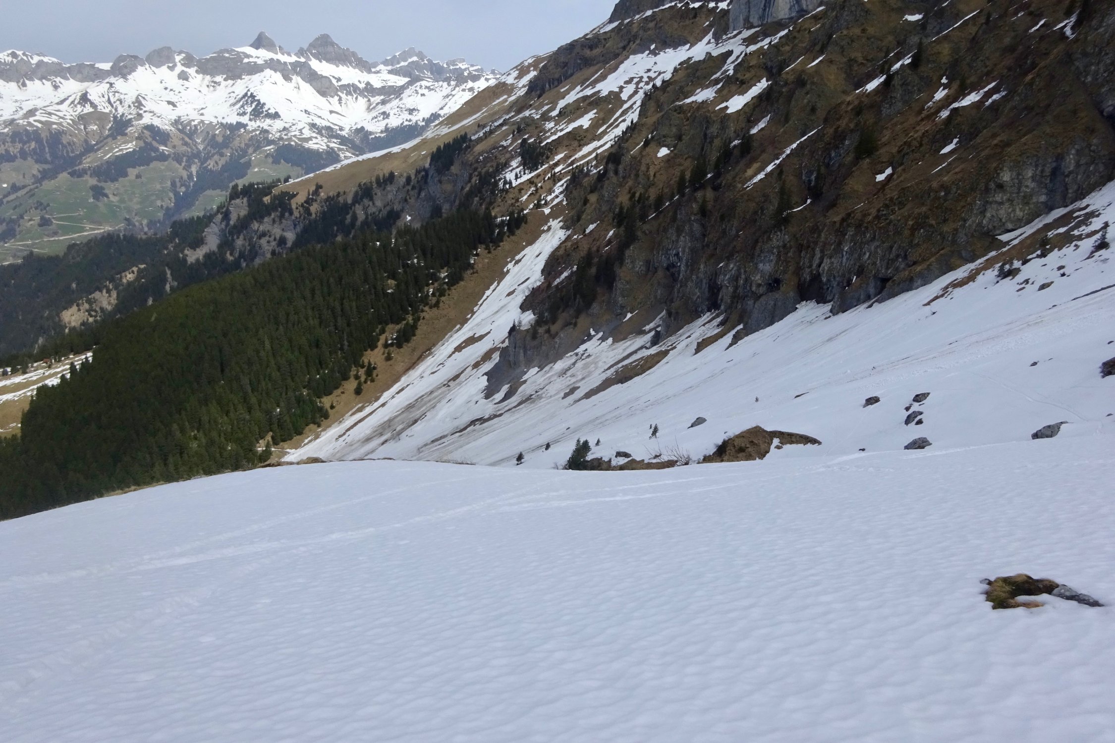 Kann sicher noch ein paar Wochen gemacht werden. Man sollte aber früher als 08:00 starten bei der Bergstation Haldi. Harscheisen sind, wenn es kälter wird, unbedingt mitzunehmen. Jemand anders bereichtete davon, vor ein paar Tagen den Steilhang zur Stafelalp bei hart gefrorenen Verhältnissen nicht bewältigt zu haben.
