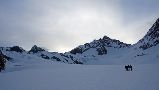 Dank gut eingeschneiter Gletscher und eine hervorragende Spur am Nordhang des Vorder Galmihorn war es nahezu perfekt. Danke derjenige der die Spur als erster angelegt hat denn sie war für mein Gefühl genau richtig (Steilheit) und mit luxoriösen "Wendeplätze" versehen.