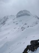 Mit Neuschnee sicher weiterhin anstrengend. Man müsste mal eine bessere Spur anlegen, da der Schnee schwer und tief ist, tut das wohl niemand und der erste Spurer hat aus unserer Sicht ein leichtes Persönlichkeitsproblem, dass man aber mit der Wegnahme seiner Steighilfen lösen könnte.... Spass beiseite, die Spur ist viel zu steil angelegt, aber auch wir waren etwas zu faul, eine neue zu machen. Next time ;)