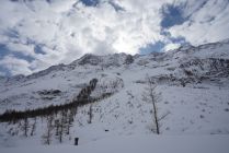 Ich bin dann nach Nordosten abgefahren, aber oberhalb vom Dischlighorn an den Grat gequert (unschwer, kein Fels) und dann zu diesem abgefahren, um es einmal zu besuchen. Dann weiter mit einer etwas steileren Stelle ins Tal. Schnee wechselhaft. Zurück nach Wiler hat es von Blatten 200 Hm Gegenanstieg und man muss die Ski nach der Weissenried immer wieder tragen.