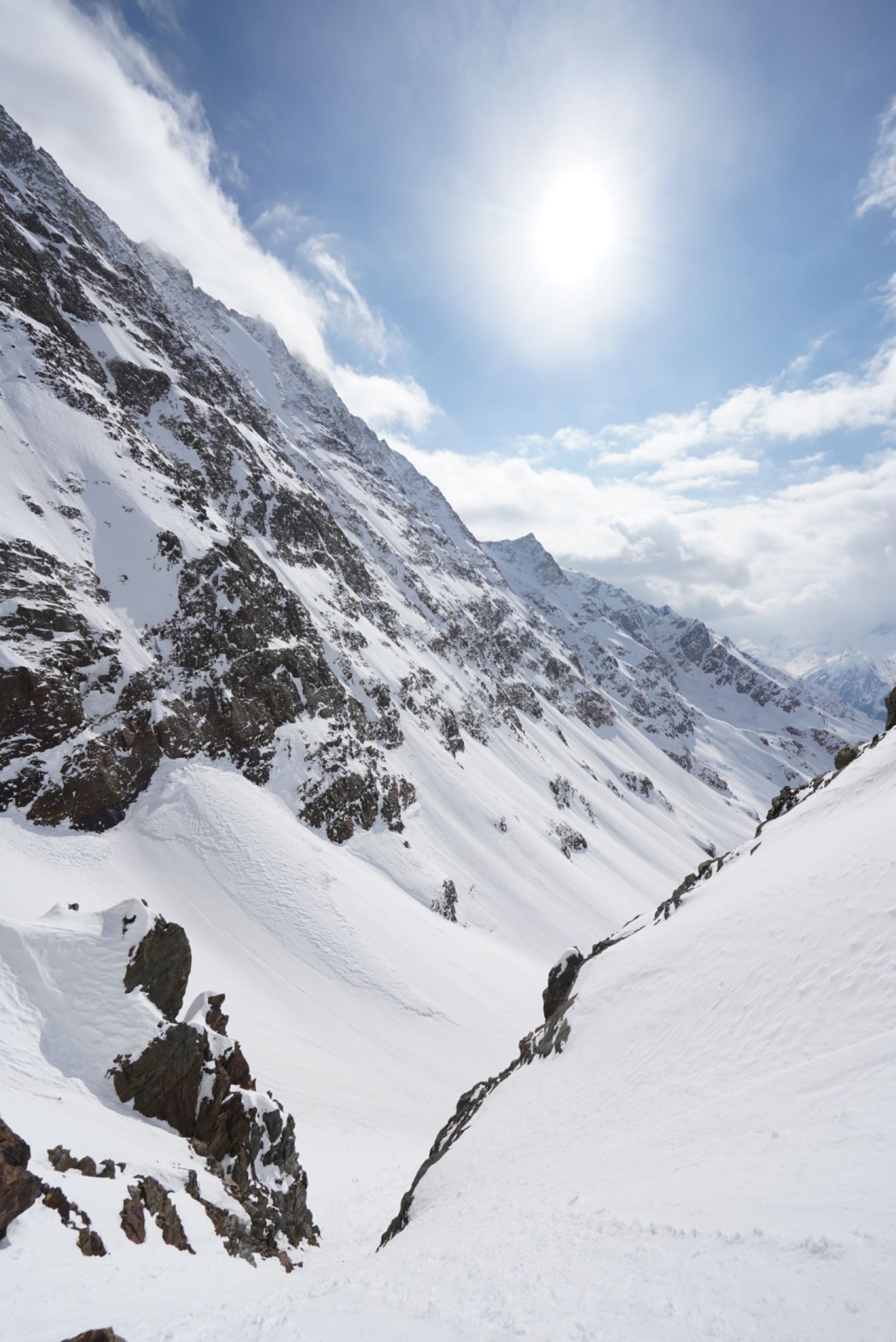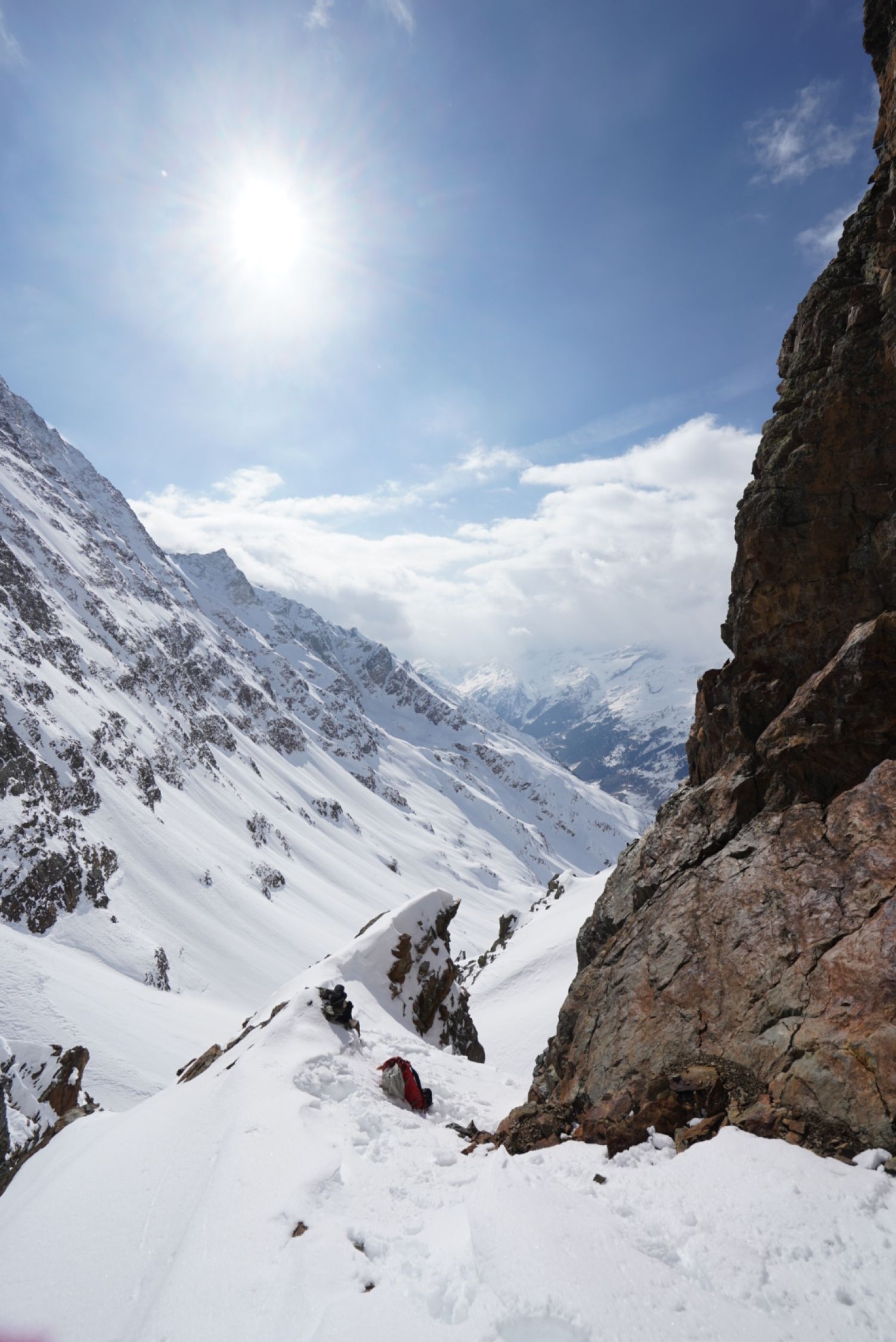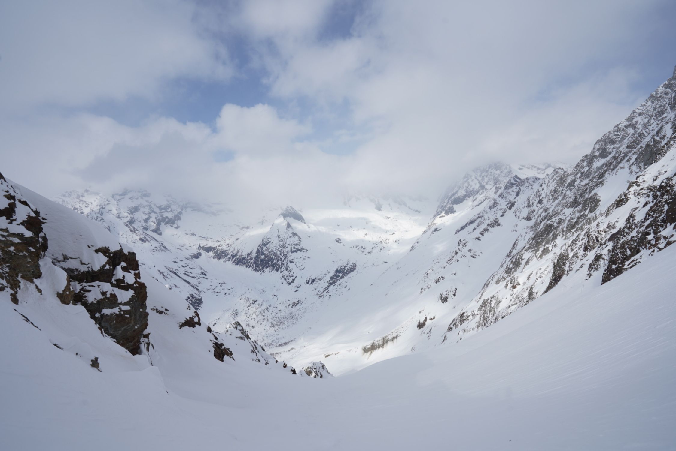 Tour von Kippel aus. Die Strasse zur Lauchernalp hat nur teilweise Schnee. Ab etwa 1600 m fast durchgehende Schneedecke. Über den neuen Winterzugang (siehe SAC) und Weissenried nach Blattern und weiter zur Gletscheralp. Hoch zum Couloir der Gletscherspitza ging es gut, etwa 10 cm Auflage die ich gespürt habe. Ich bin ganz hoch zum Gipfel über das Couloir was bis etwa 20 m unter dem Gipfel zieht. Dann über die östliche Seite des Gipfelaufbaus mit delikater/heikler Kletterei (III-III+) zum Gipfel. Nicht lang, aber etwas ausgesetzt und anspruchsvoll in Skischuhen. Das Couloir runter und dann zum Sattel oberhalb vom Gipfel.