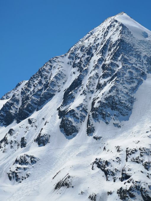 Wir haben die Abfahrt über das steile NW Couloir gewählt. Mit Start der Abfahrt um ca. 12.00 sind die Bedingungen im Couloir optimal. In der ersten Passage, die etwas mehr nach Süden ausgerichtet ist hatten wir leichten Sulz-Schnee. Im NW-Couloir war der Schnee grösstenteils pulverig und teilweise Firn.