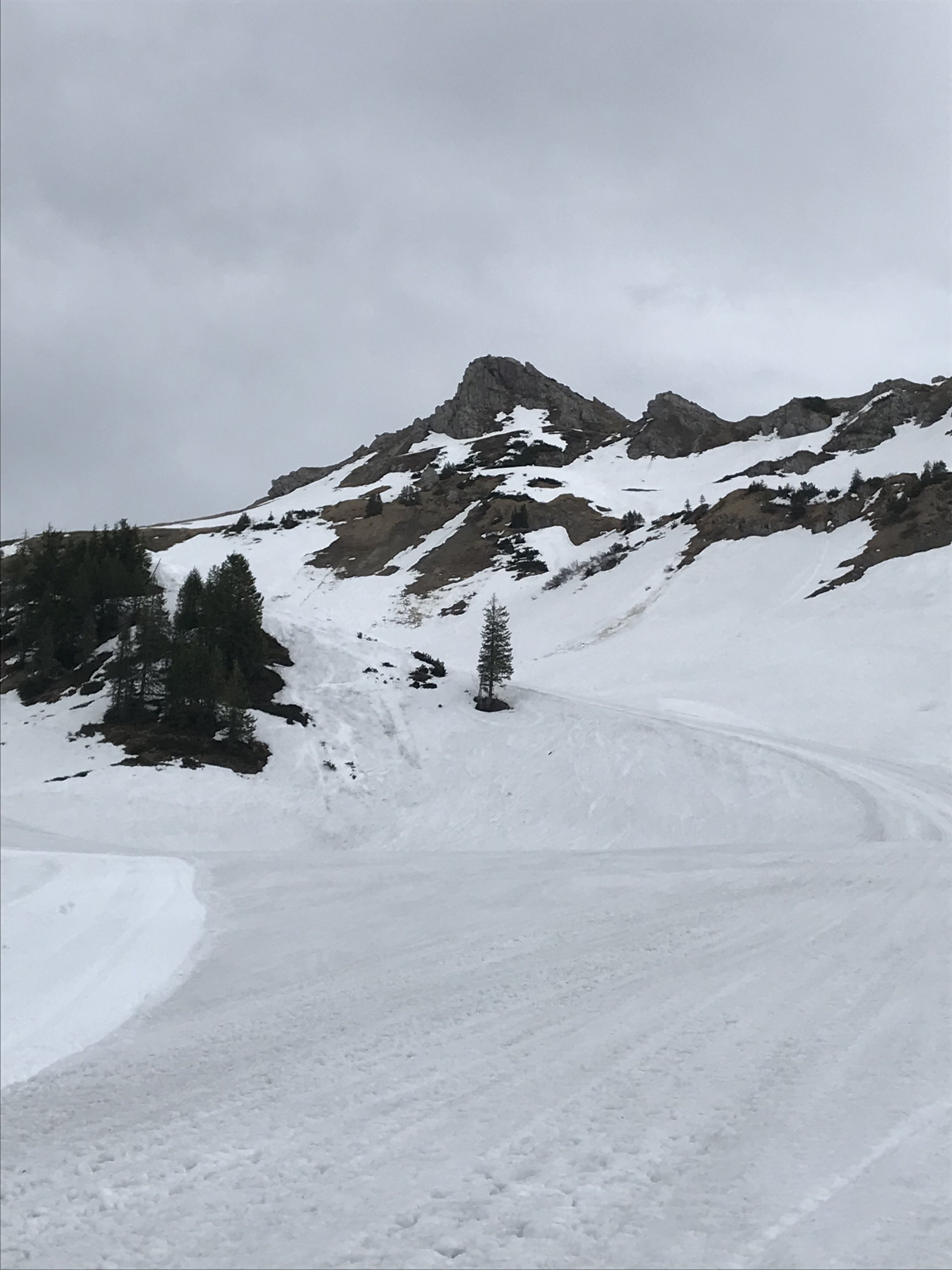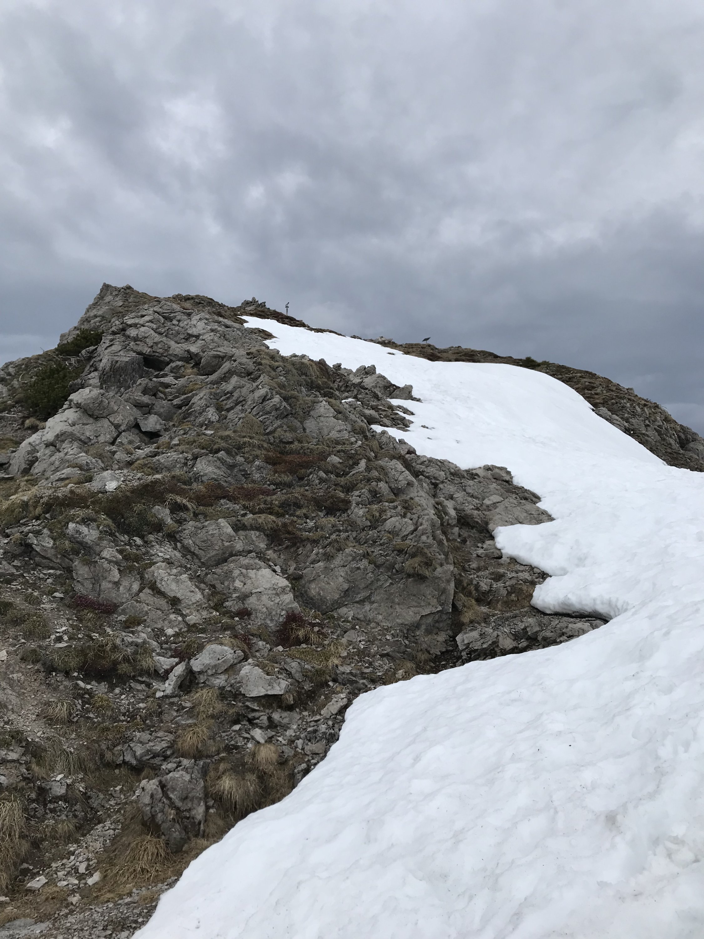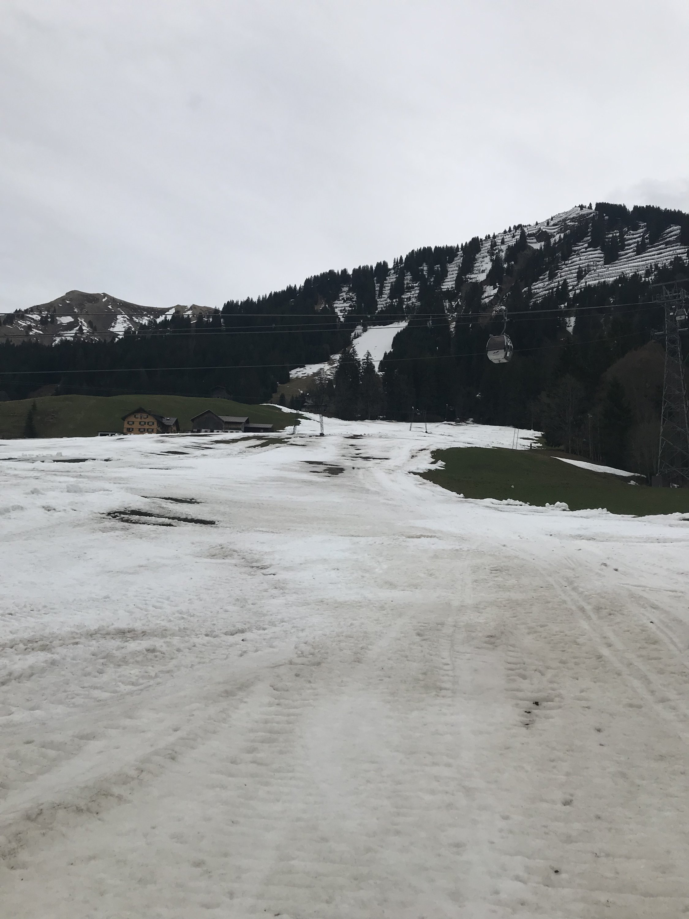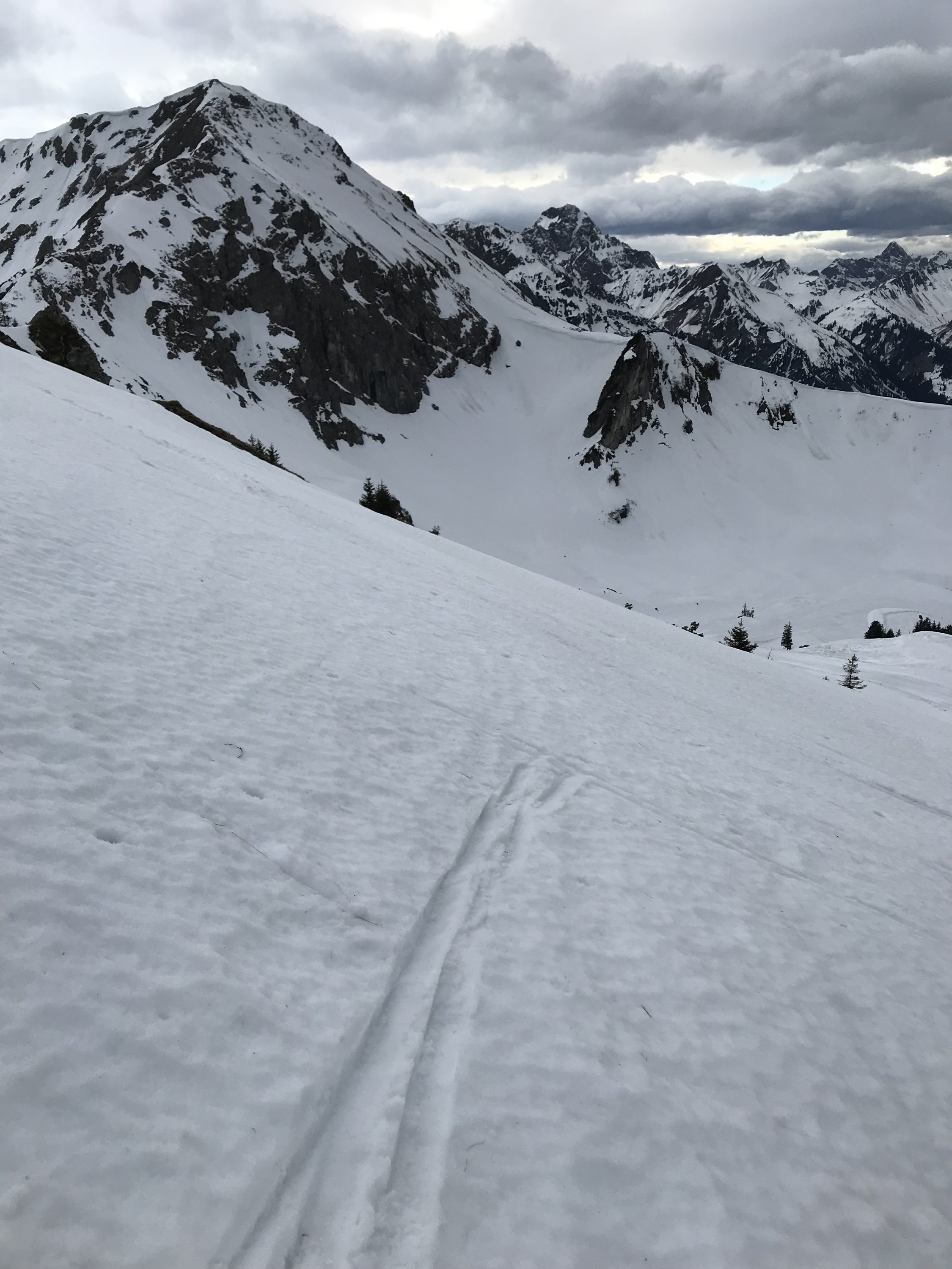 Schöne Feierabendtour auf die Kanzelwand. Das Skigebiet ist seit Dienstag geschlossen und somit kann man nun entspannt über die ehemalige Skipiste aufsteigen. Somit ist es möglich direkt ab Parkplatz Riezlern anzufellen. Piste wurde von Pistenbullys befahren, der Schnee ist jedoch weich und somit hat das wenig gestört. Oben im Gelände noch genügend Schnee, obwohl die Hitze der letzten Tage schon ganz schön zugesetzt hat. Ausser an ganz steilen Südhängen wird der Schnee nun langsam Sommerhart, was sehe angenehm ist. Entsprechend war Aufstieg und Abfahrt gut. Abfahrt aktuell bis auf 10m Unterbrechung unterhalb des Sattels noch vom Gipfel bis nach Riezlern möglich. Auch Kuhgehrenspitze kann noch von der Seite gemacht werden. Klettersteig an der Kanzelwand ist schneefrei und könnte ebenso „mitgenommen“ werden.