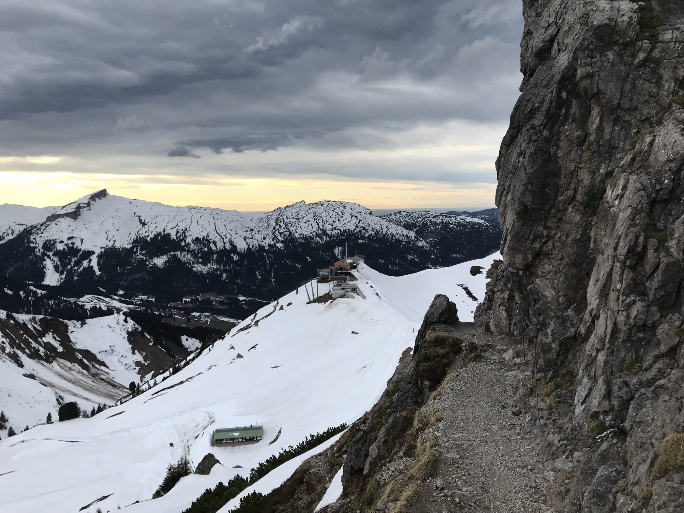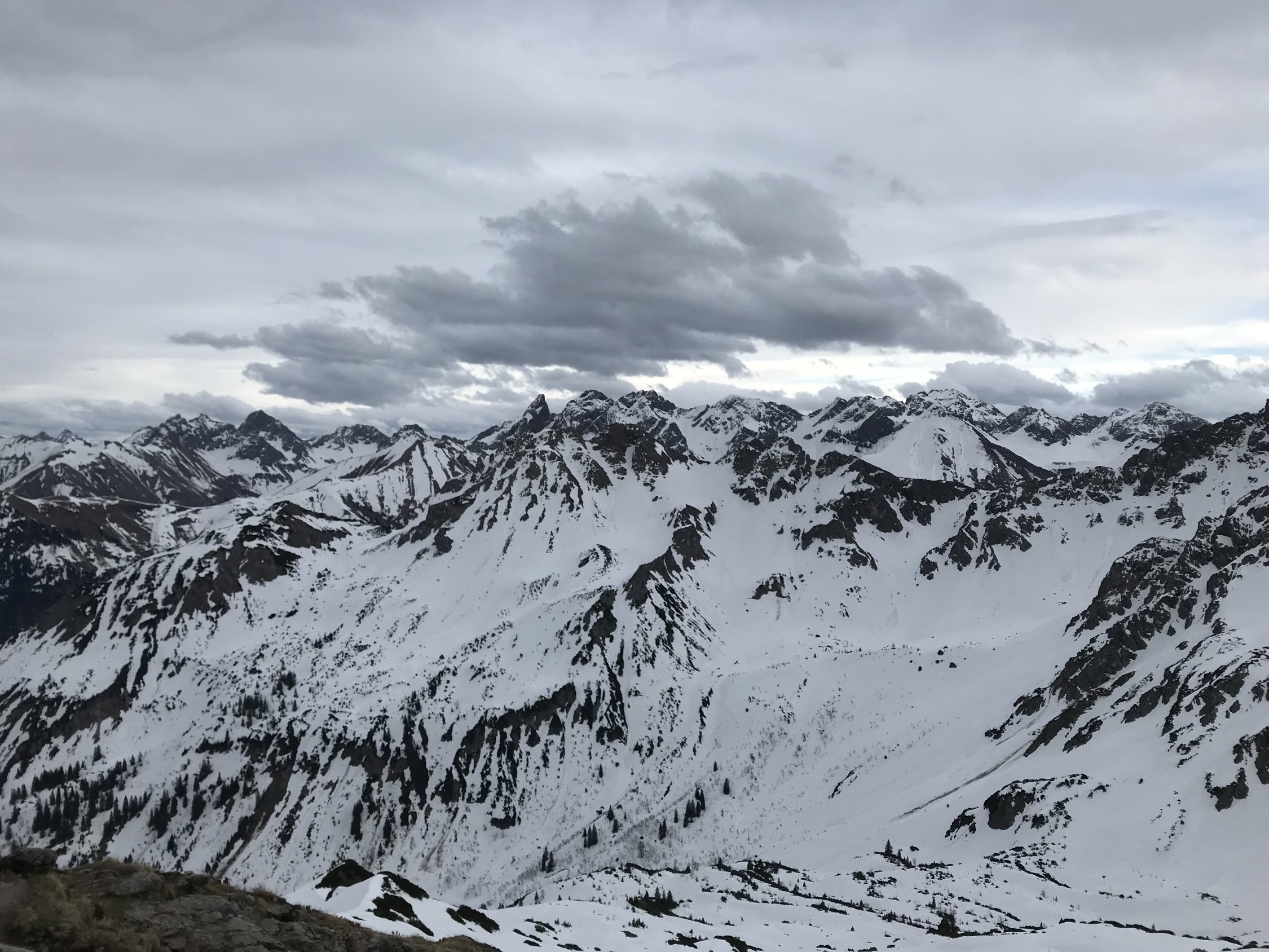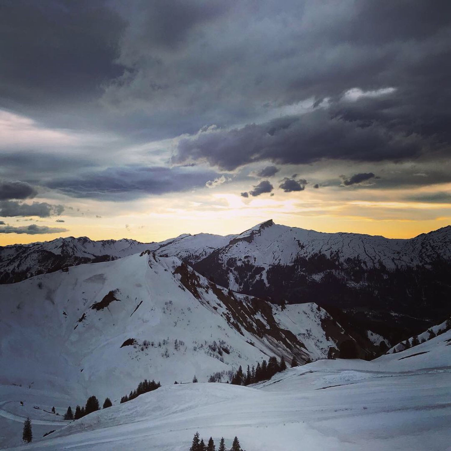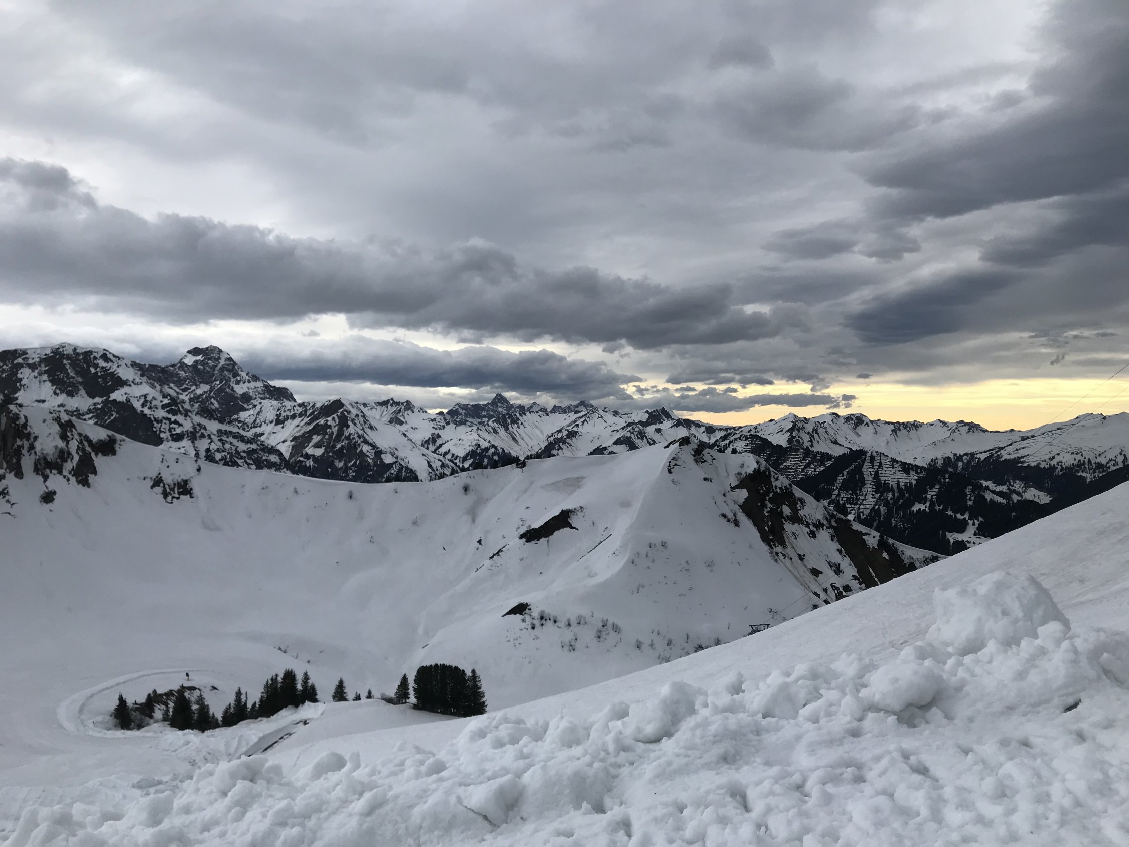 Schöne Feierabendtour auf die Kanzelwand. Das Skigebiet ist seit Dienstag geschlossen und somit kann man nun entspannt über die ehemalige Skipiste aufsteigen. Somit ist es möglich direkt ab Parkplatz Riezlern anzufellen. Piste wurde von Pistenbullys befahren, der Schnee ist jedoch weich und somit hat das wenig gestört. Oben im Gelände noch genügend Schnee, obwohl die Hitze der letzten Tage schon ganz schön zugesetzt hat. Ausser an ganz steilen Südhängen wird der Schnee nun langsam Sommerhart, was sehe angenehm ist. Entsprechend war Aufstieg und Abfahrt gut. Abfahrt aktuell bis auf 10m Unterbrechung unterhalb des Sattels noch vom Gipfel bis nach Riezlern möglich. Auch Kuhgehrenspitze kann noch von der Seite gemacht werden. Klettersteig an der Kanzelwand ist schneefrei und könnte ebenso „mitgenommen“ werden.
