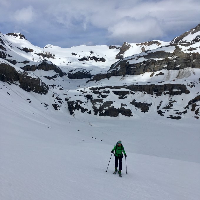 Wir haben um 10Uhr die Felle aufgezogen, da waren die untersten 100m leicht sulzig. Oben dann harter Schnee. Aufstieg ging aber gut ohne Harscheisen. Gute Spur bis zum Skidepot. Es war föhnig mit einigen Böen aber viel weniger als auf dem Wildstrubel. Es hat dann den ganzen Tag nicht aufgeweicht.