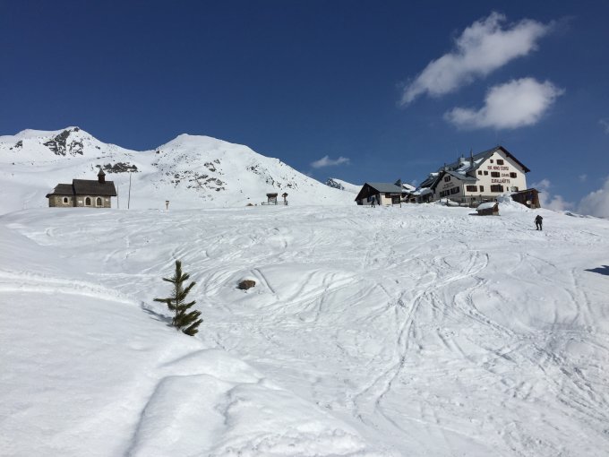 Genügend Schnee ab Parkplatz. Tour gut eingespurt. Ab ca. 2'800 Nebel / Wolken. Abfahrt zur Marteller Hütte bei gedeckeltem Schnee ohne Spass.