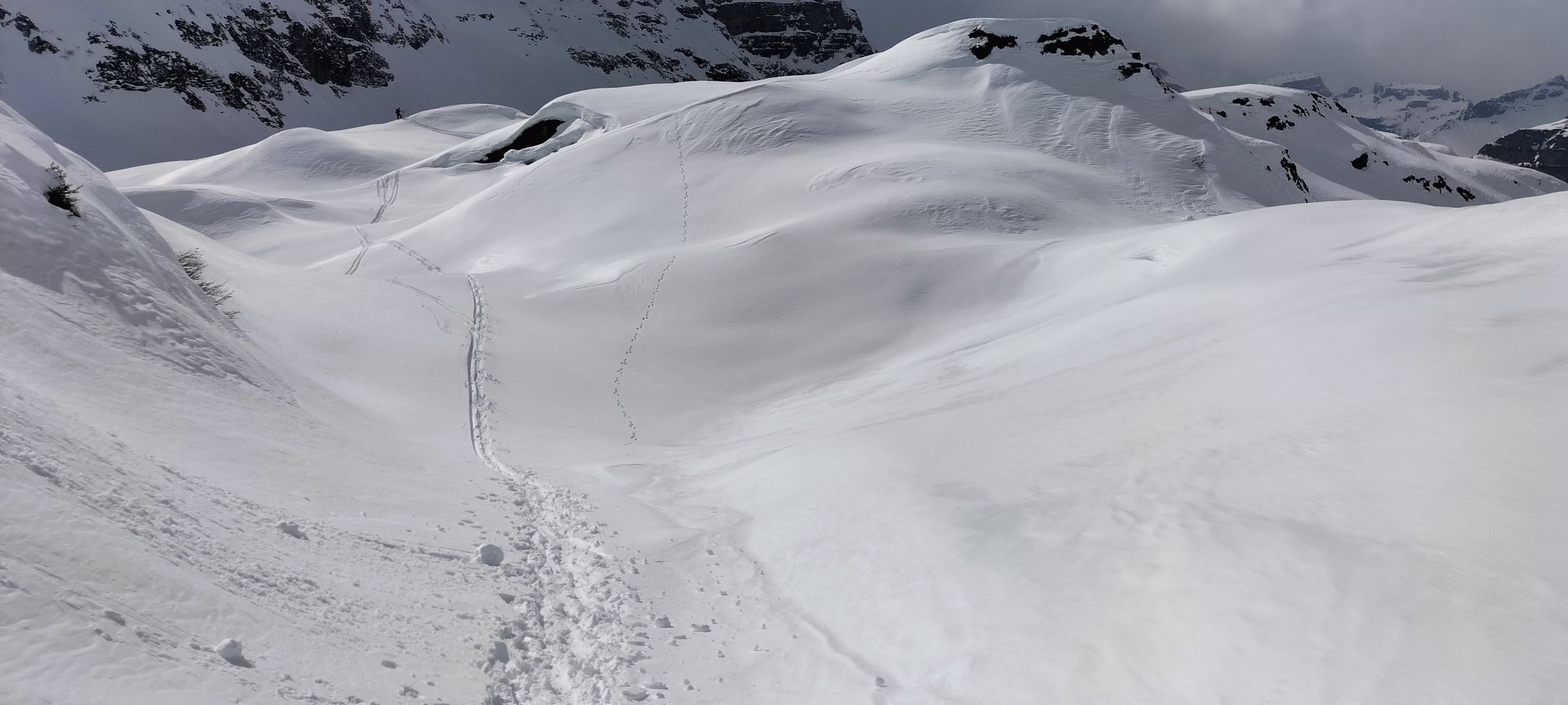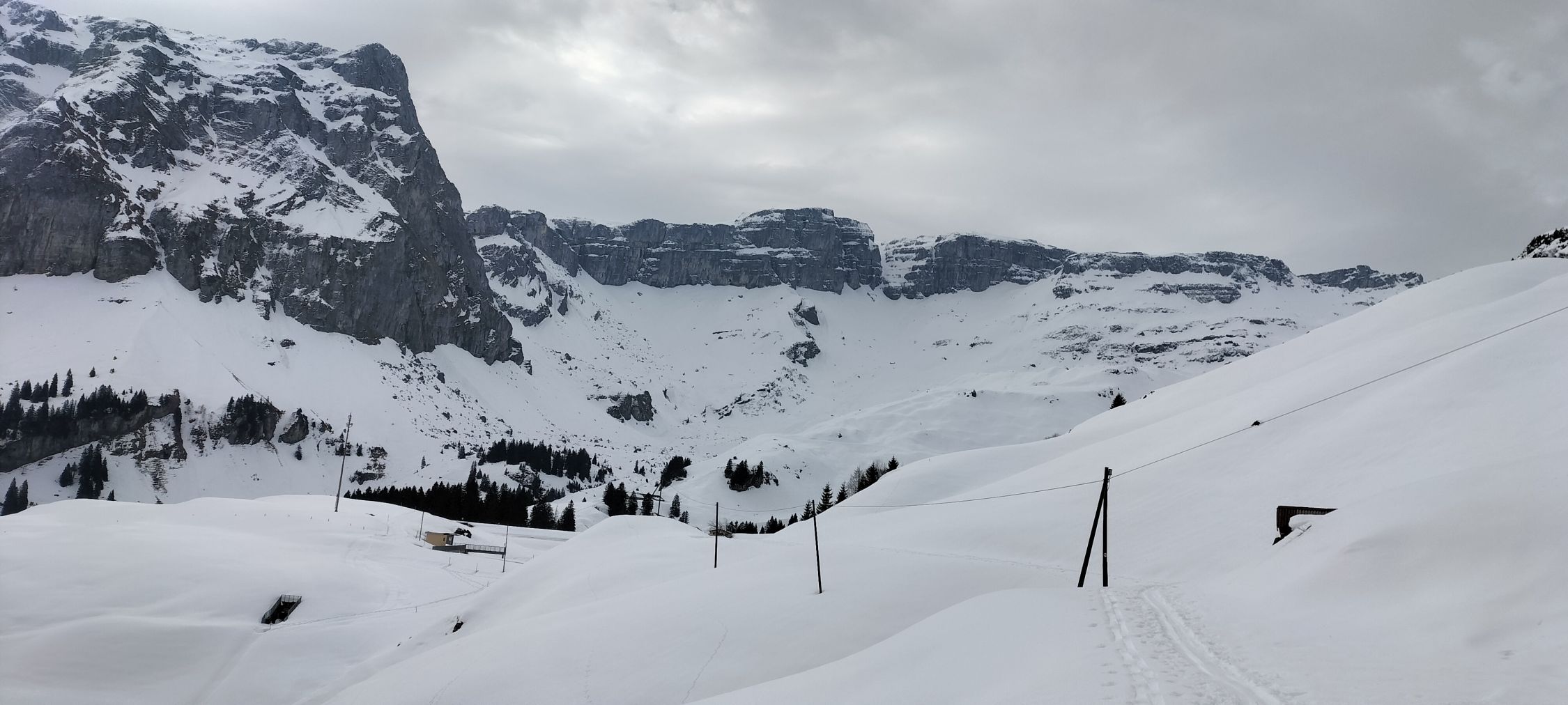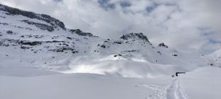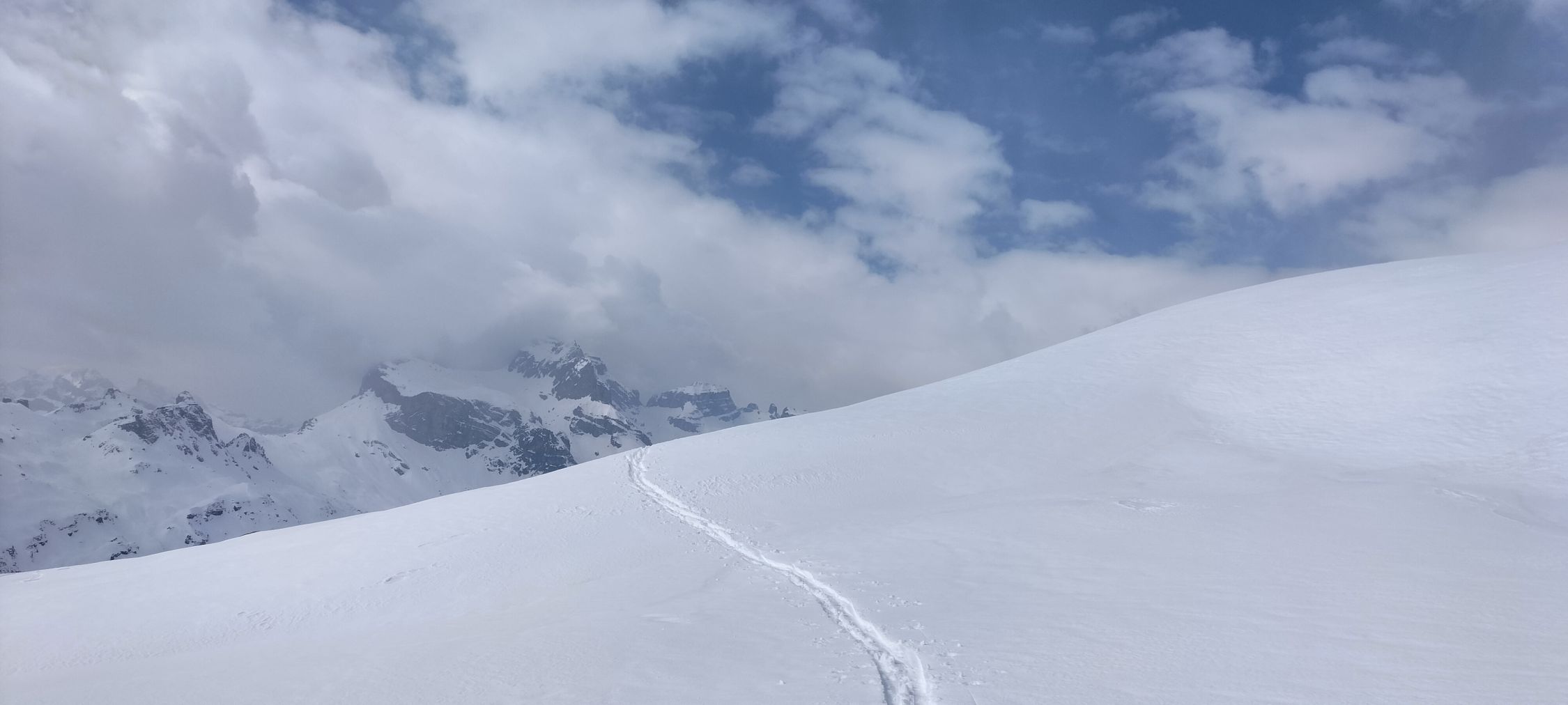 Start der Tour beim der Barriere Schwandboden, Aufstieg überWaldi nach Ruosalp bis zum Glatten, das Wetter heute nur wenig Sonne, nach kurzer Pause Abfahrt zum Firnerloch, weiter gings hoch zum Läckistock, nach kurzer Abfahrt , Querung zum Mären Nord, die Einfahrt zur Inner Brüelchälen war dann die Schlüsselstelle der Tour, mit Steiler Abfahrt in Richtung Glattalp, durch ein Couloir nach Mütschen , bei recht guten Pulverschnee , beim Märenbrunnen dann Lawinenschnee, zuletzt noch Sulzschnee bis Sahli.
