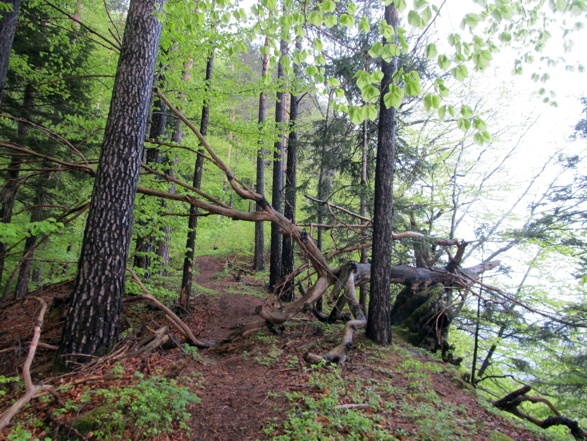 Nach Regen in der Nacht Start bei trockenen, aber bewölkten Verhältnissen. Das Terrain war nass und in erdigen Abschnitten schmierig, aber ansonsten gut zu begehen. Ca. 80% dieser Route verläuft abseits markierter Wanderwege.