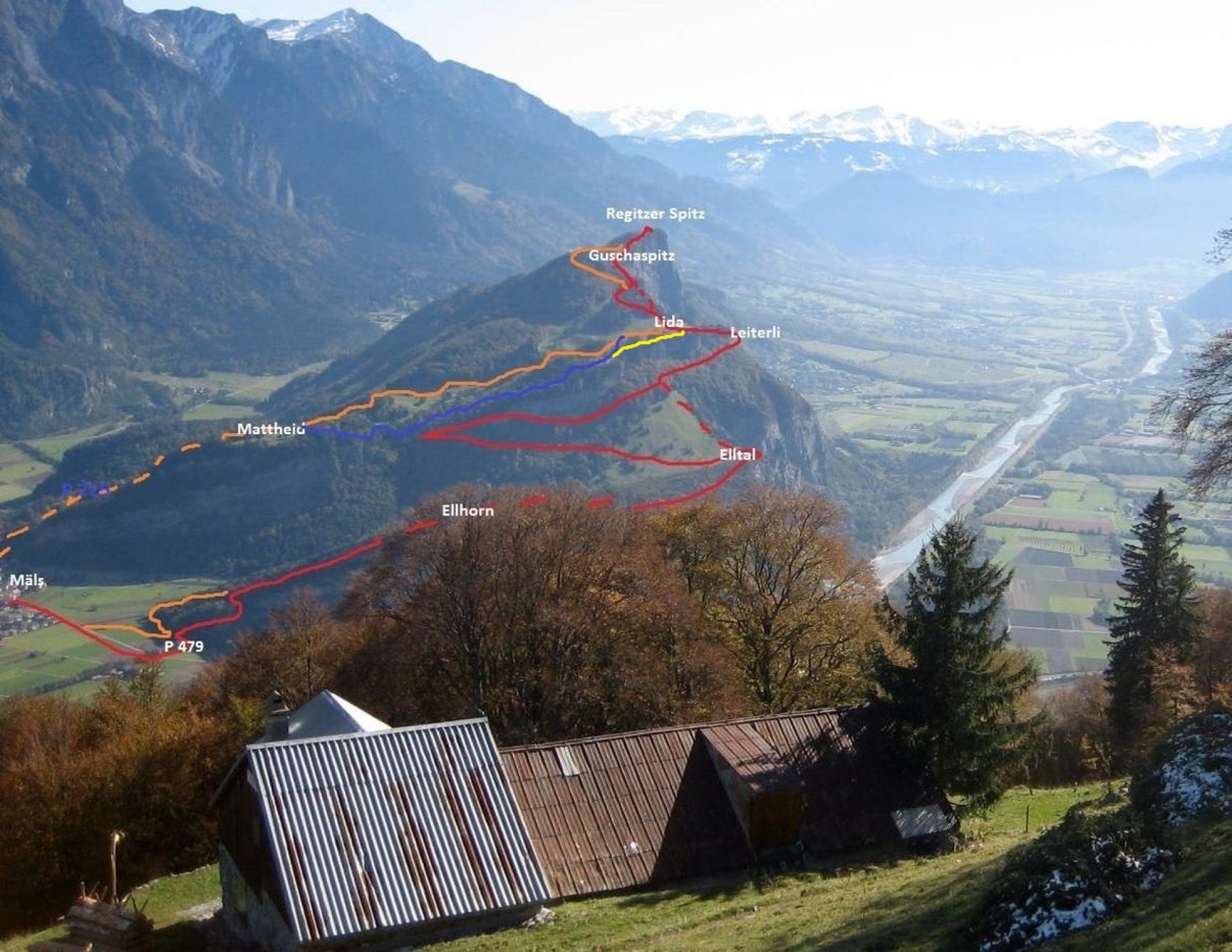Die Route über die Fluh ist unschwierig, auch die Orientierung ist leicht. Sie bietet auf Lida auch schöne Tiefblicke in das Elltal und auf das Sarganserland.