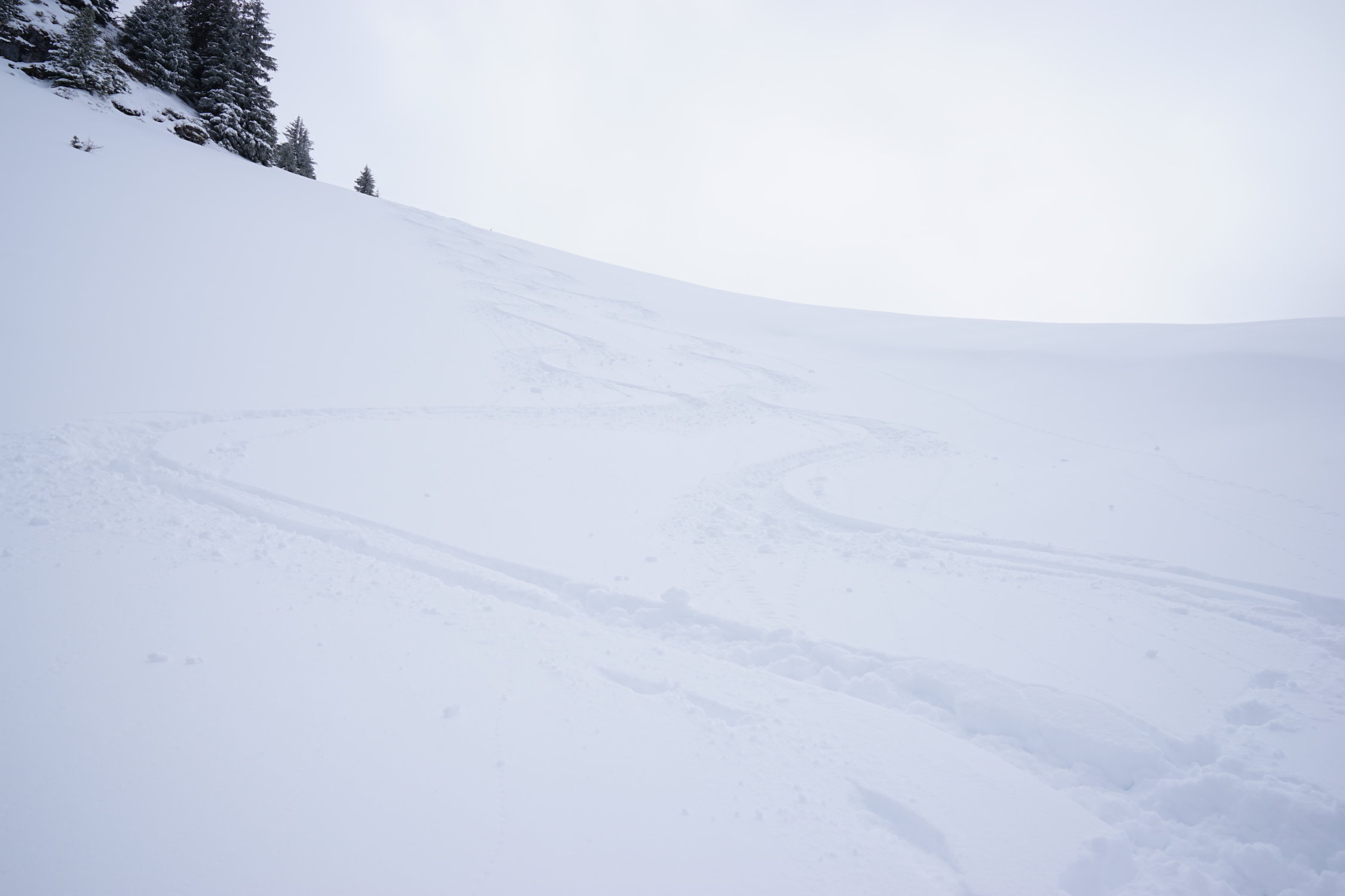 Am Morgen um 9 Uhr bei -2°C im Meniggrund gestartet. Leichter bis heftiger Schneefall während des ganzen Aufstiegs. Im Meniggrund und bis zum Brätliplatz dürftige Verhältnisse, 15cm Neuschnee ohne Unterlage. Vom Brätliplatz sehr gut eingeschneit. Neuschneehöhe kontinuierlich mit der Höhe ansteigend von 30 bis 40 cm. Kurz vor dem Grat ende des Schneefalls und