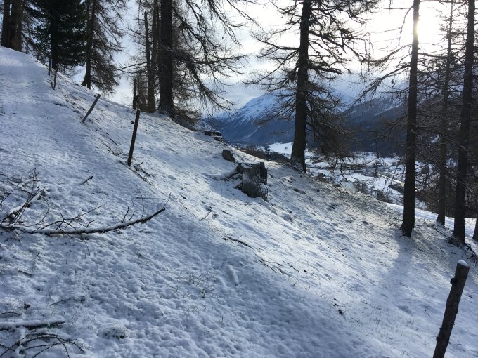 Abfahrt oben Pulver. Ab Es-cha Hütte leicht bruchharstig.