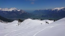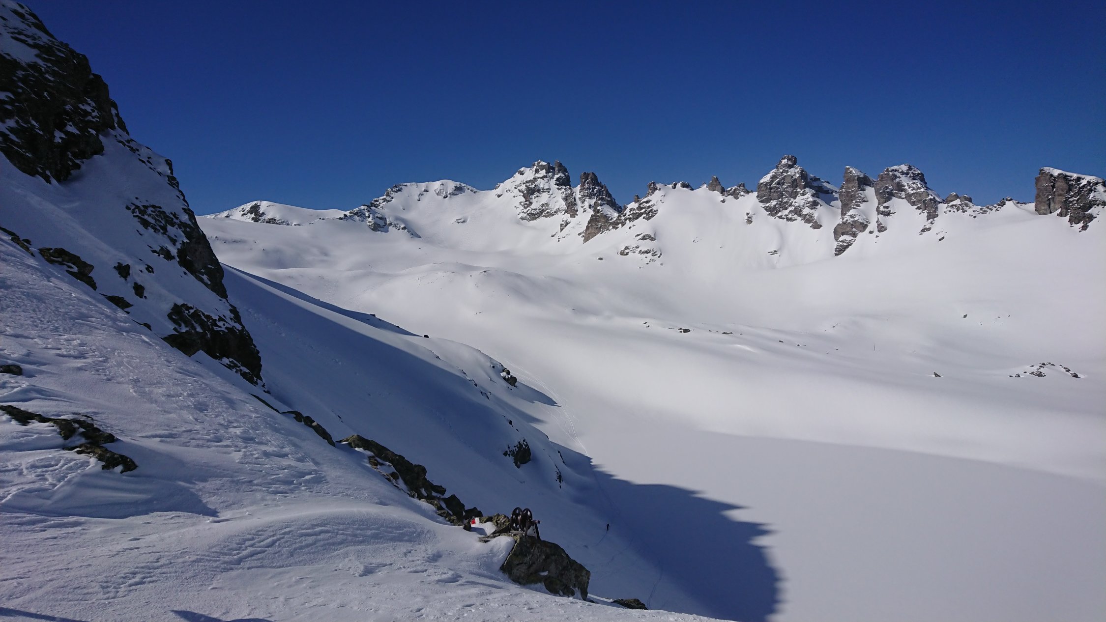 Kurz nach der Wildseeluggen ging eine Lawine bis auf die Spur. Die Hänge unter den Hörnern haben sich auch teilweise entladen.