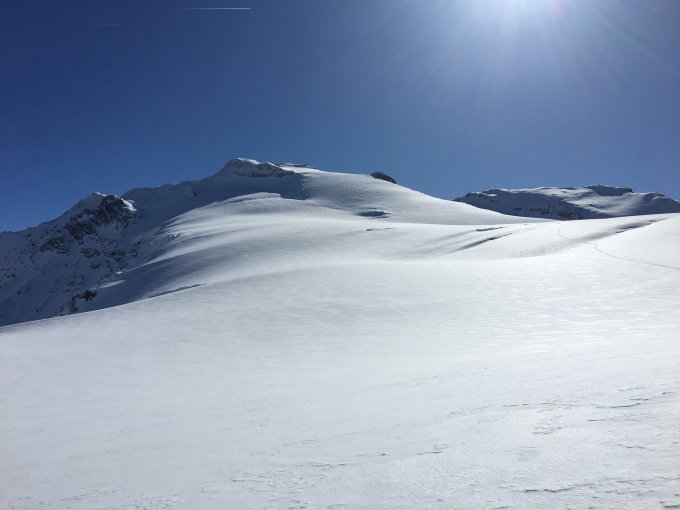 Abfahrt steter Wechsel zwischen schweren Pulver, Winddeckel und Schmelzharschdeckel, insgesamt aber mehr Vergnügen als Mühsal.