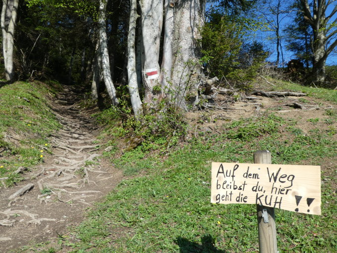 Die Wanderwege sind im untersten Abschnitt noch meist trocken, doch schon unter der Alpe Maiensäss liegen erste kleine Schneefelder. Von der Alpe Maiensäss bis zum Gipfel noch einiges an nassem Schnee. Wo kein Schnee mehr liegt, sind die Wege schmierig bis nass.
