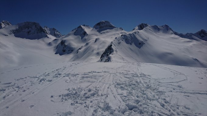 Im Anschluß ans Gr. Leckihorn... Zwischendurch Megastollen, sonst gut. Mit Schi bis fast zum Gipfel. Retour über den Tälligrat. Von dort nach Realp schöner Firn.