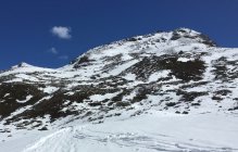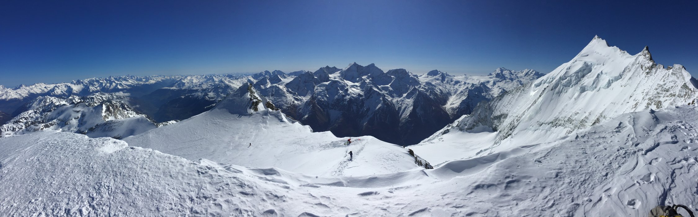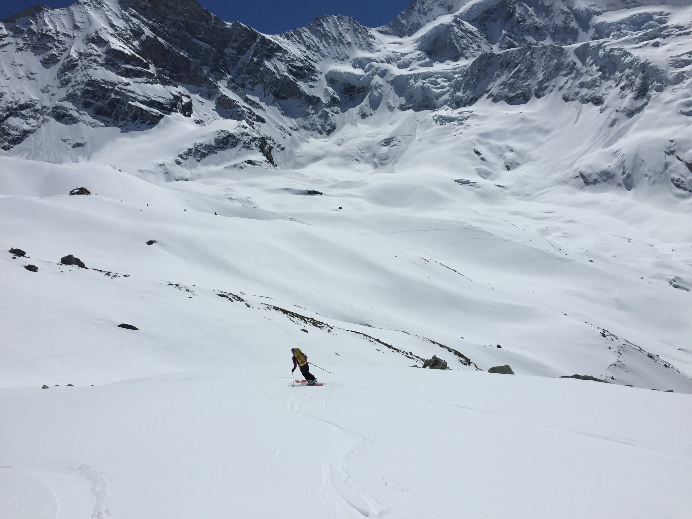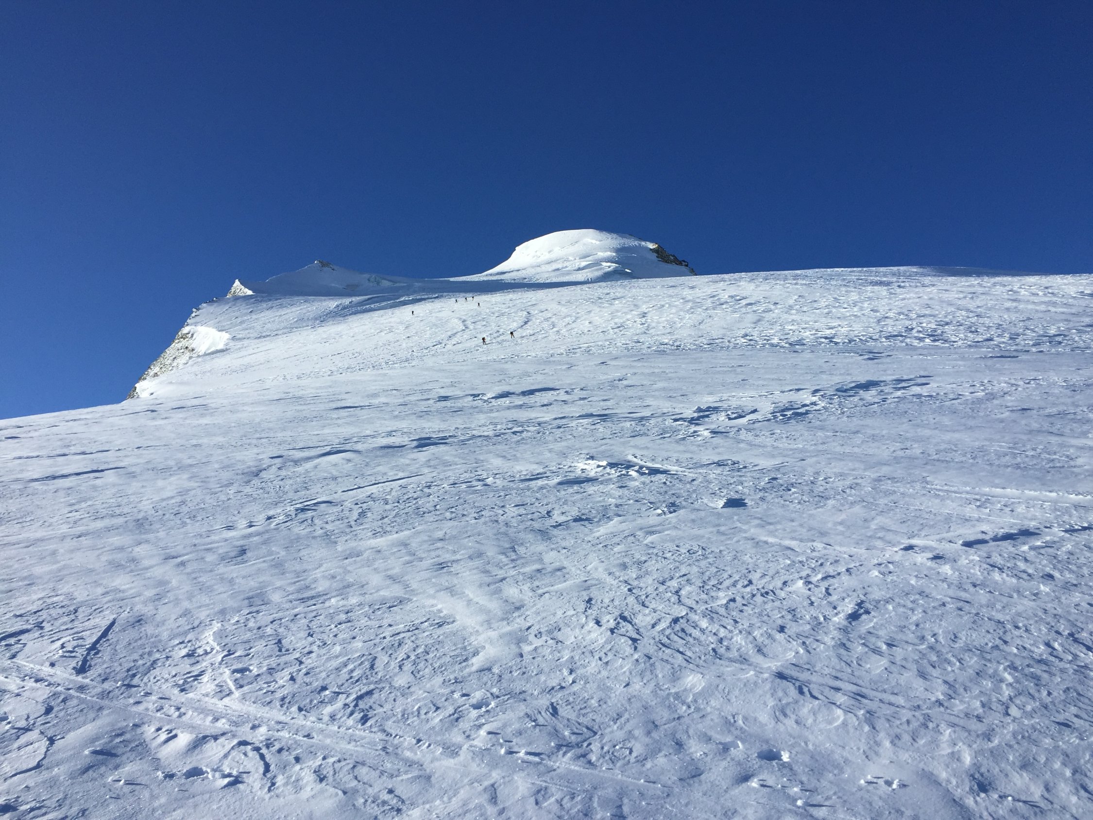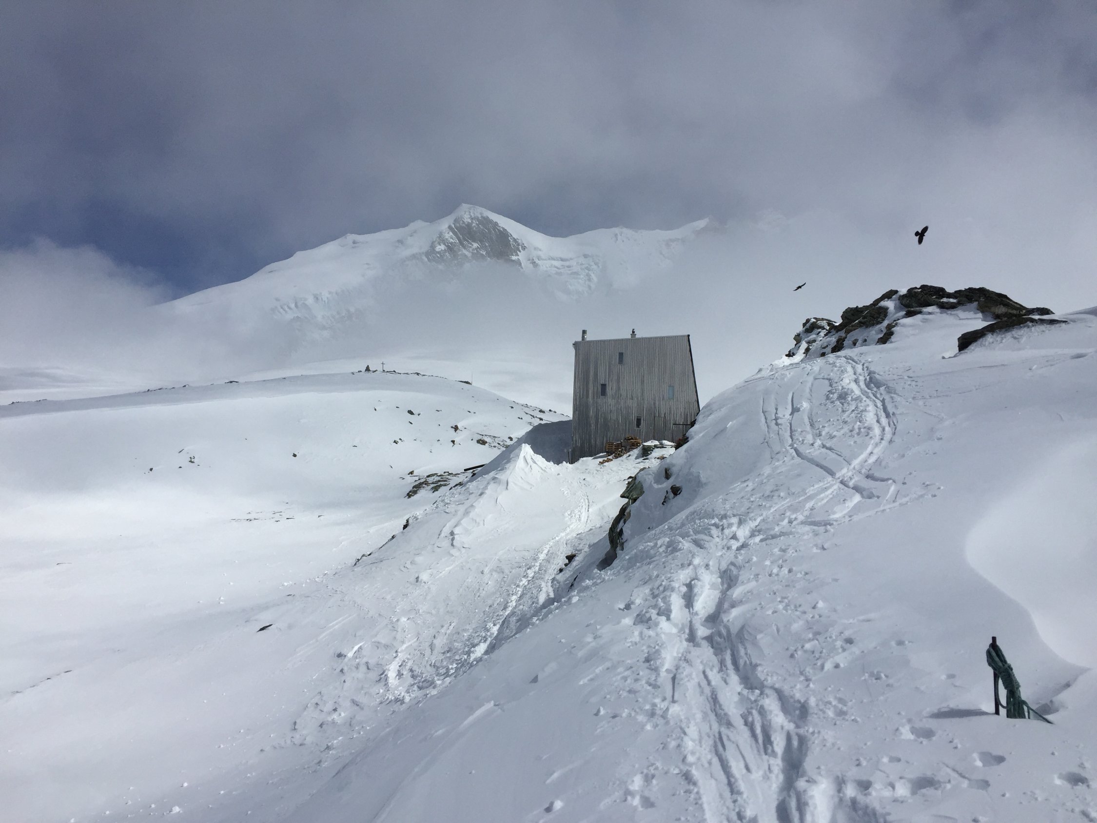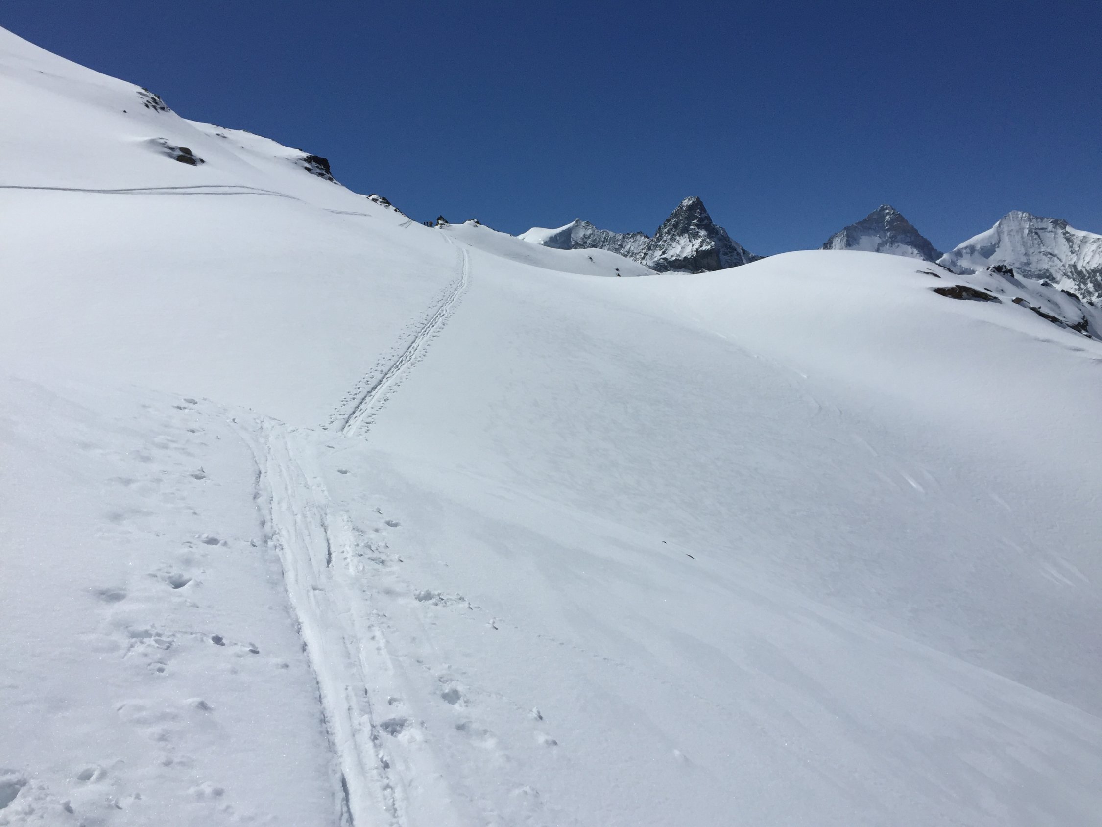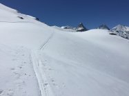 Für den Aufstieg von der Hütte auf das Bishorn sehr gute Bedingungen. Ab Skidepot zum Gipfel guter Trittschnee.