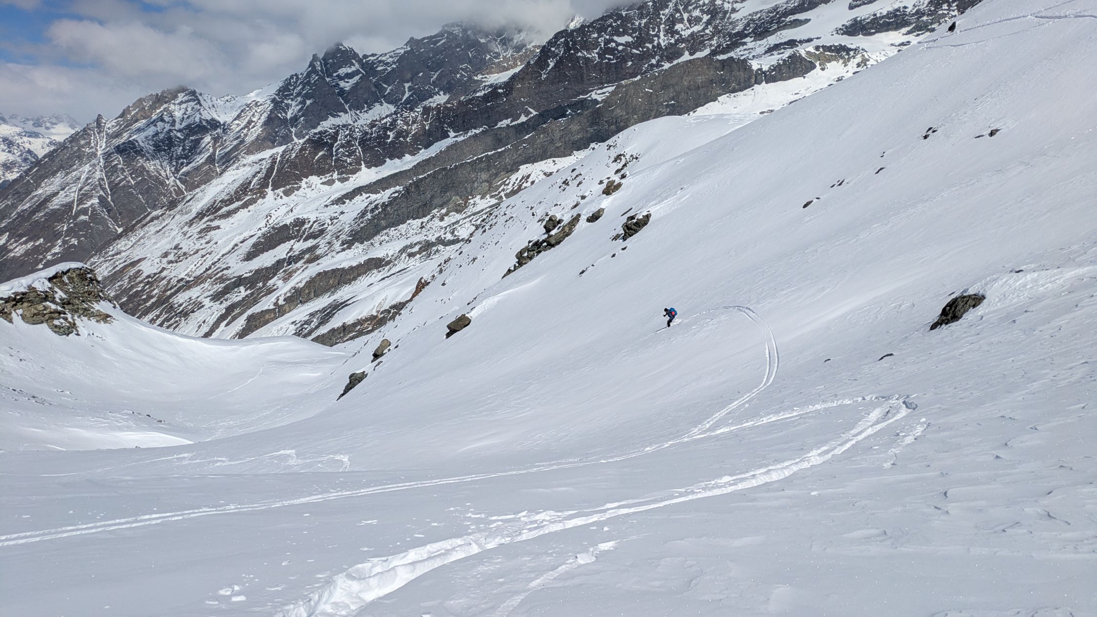 Eine unvergessliche Skitour im Herzen der Zermatter- Bergwelt und waren überrascht über die wenigen Tourengänger im Gebiet.