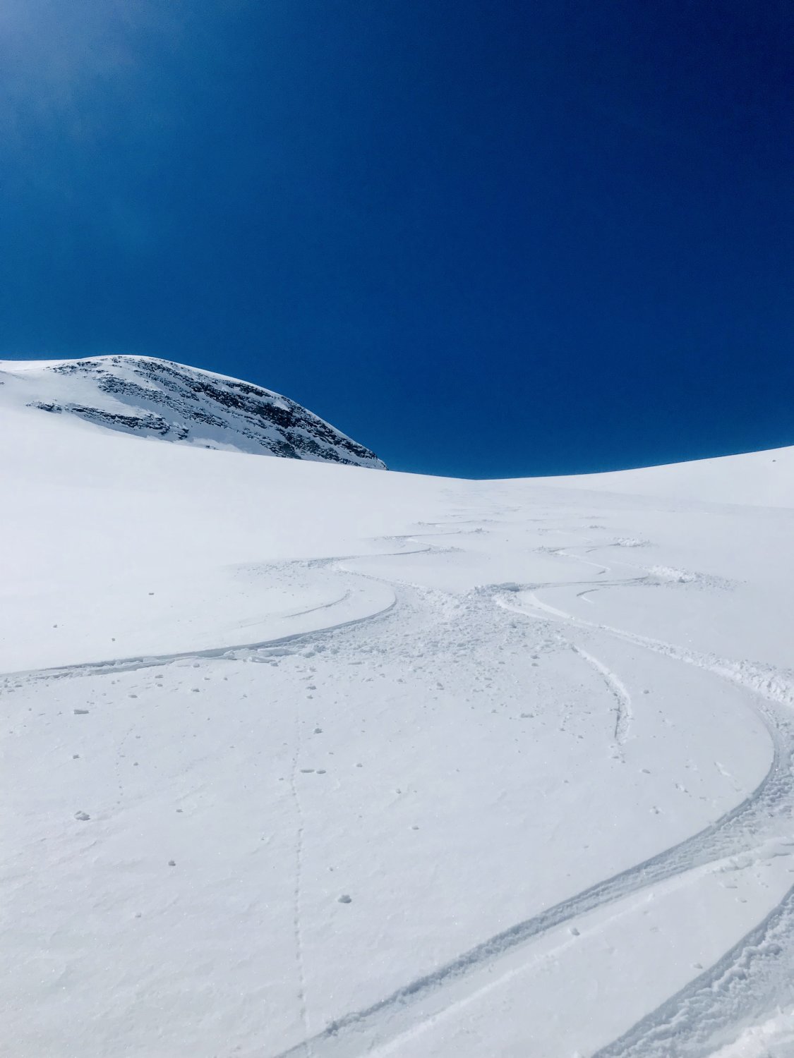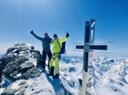 Ausgezeichnet. Wie schon mal hier beschrieben. Ideale Spur bis 10 m unter Gipfel. Abfahrt oben leicht gepresster Pulver ab Steilhang (3900m) schöner Pulver, weiter unten (3300m) leicht angefeuchteter Pulver und unterhalb ca. 2800m Übergang in feinen Sulz im Talboden dann Nasschnee. Wir sind über denn Allalingletscher in NNE Richtung bis zur Staumauer Mattmark abgefahren. Schnee bis etwa Eienalp (schmilzt täglich), dann laufen bis Zermeiggern. Waren um 13h unten. Aus den Süd- Ostsüdostseitigen Hängen waren ab Mittag immer wieder Lawinenniedergänge zu hören.