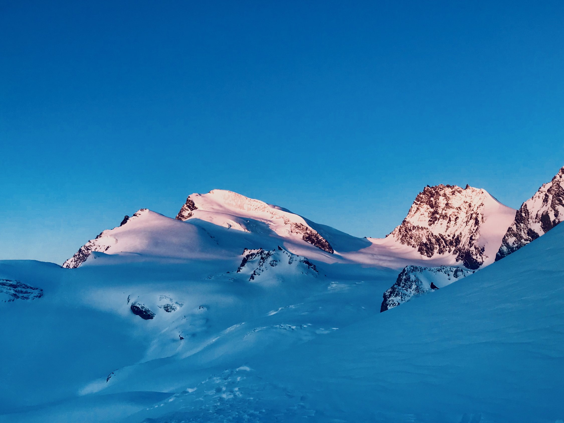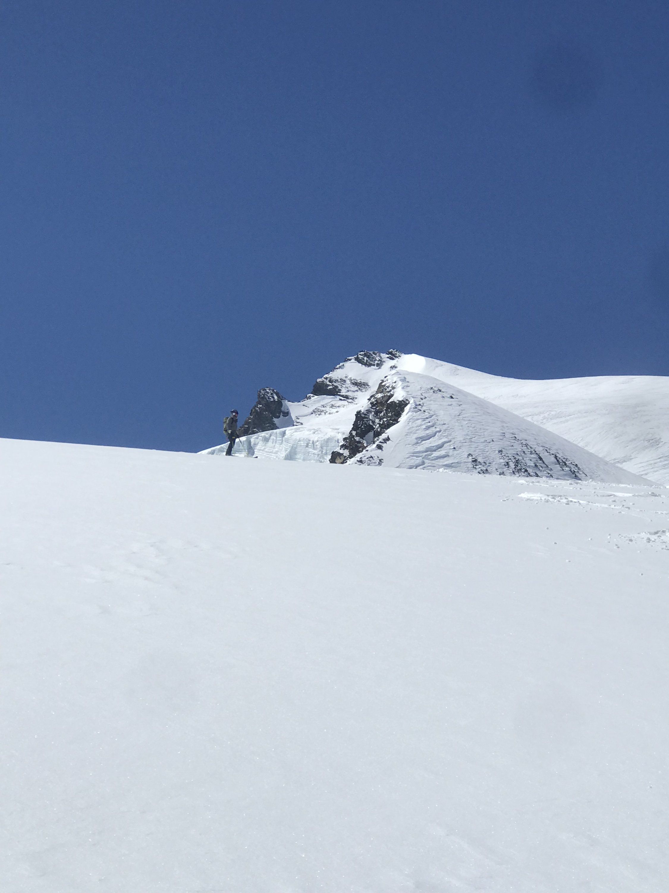 Wollten eigentlich aufs Rimpfischhorn. Da sich der 1. Mai als Prachtstag ankündigte gingen viele Gruppen ab Britannia dorthin, weshalb wir kurzfristig aufs Strahlhorn umdisponierten, was sich auch gelohnt hatte hinsichtlich Personenaufmarsch. Man sollte UNBEDINGT früh los und zeitig zurück sein !!! Steile Süd- und Osthänge sowie deren Einzugsgebiet sind nach Mittag zu meiden. Es hat sehr oft gerumpelt.