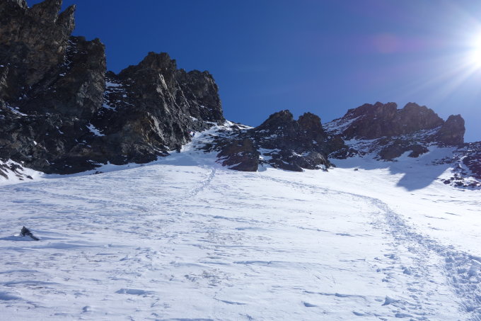 hatten 3 Exen und ein 30m Seil dabei. Adlerpass hatte mehrere Abfahrtspuren, sah griffig aus.