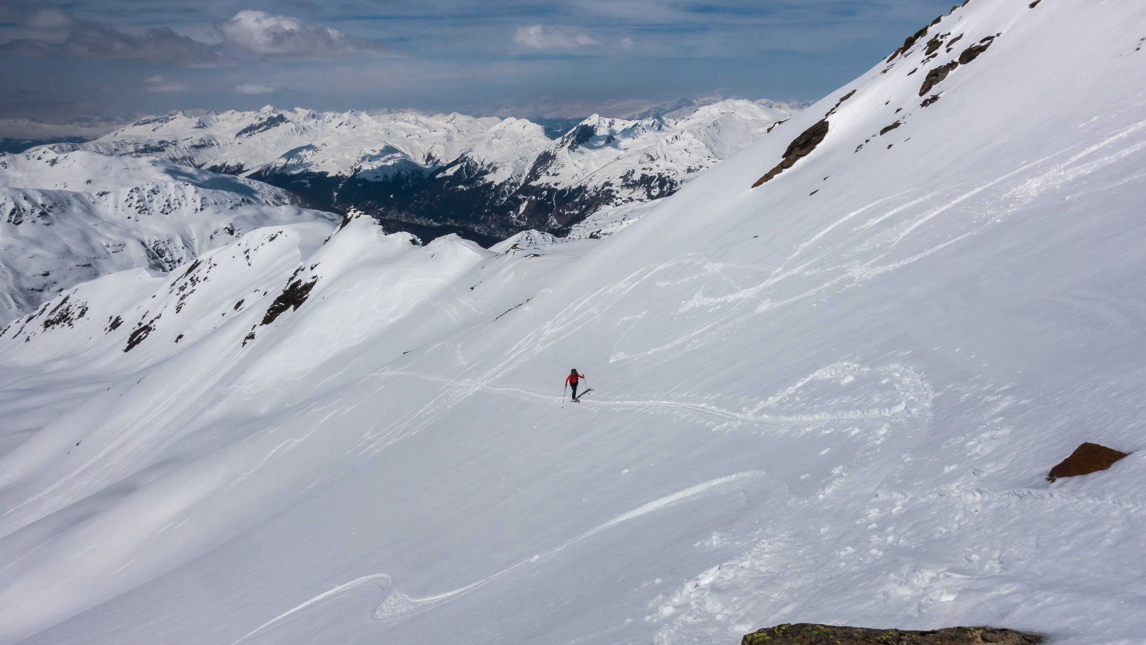 Start um 8 Uhr an der Flüela Passstrasse, wolkenlos und windstill. Gerade noch genügend Schnee ab Passstrasse. Schneedecke hart gefroren, darum die erste Steilstufe mit Harscheisen. Wunderschöner einsamer Aufstieg durchs Mattjischtälli, ausser vielen Murmeltieren keine Lebewesen angetroffen. Gipfelhang gute Spur und ohne Harscheisen. Gegen Mittag aufziehende Wolken. Abfahrt kurz vor 12 Uhr war perfekt; traumhafte Sulzhänge bis kurz vor der Passstrasse, ganz unten etwas Bremsschnee.