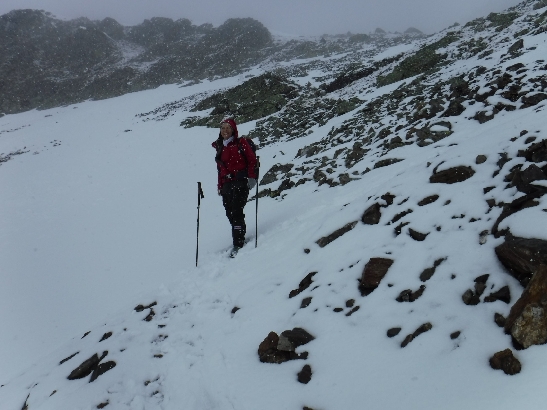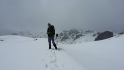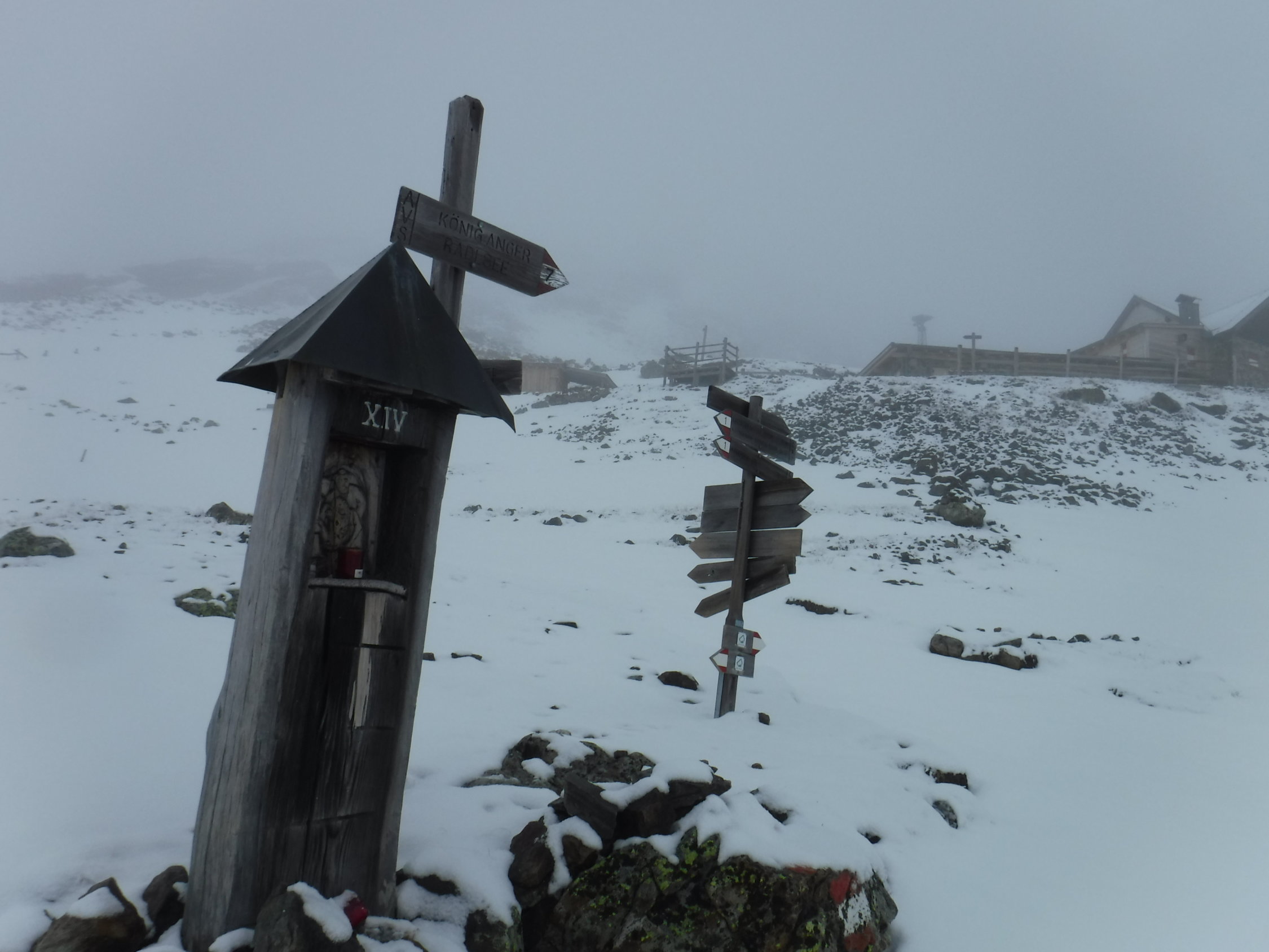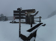 Start in leichtem Nieselregen, der dann in Schnee überging. Am See umgedreht, da der Neuschnee mehr wurde und die Sicht nicht besser. Zumal nicht abschätzbar war, wann angekündigter Vielschnee beginnen würde zu kommen. Kurz riss es oberhalb vom Latzfonser Kreuz für 10 Minuten auf. Das war es auch mit Sicht. Unterhalb der Wolkendecke am Parkplatz dann wenigstens Sicht hinab ins Tal.