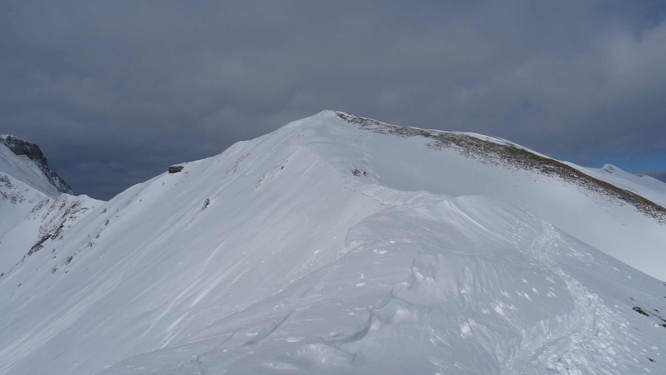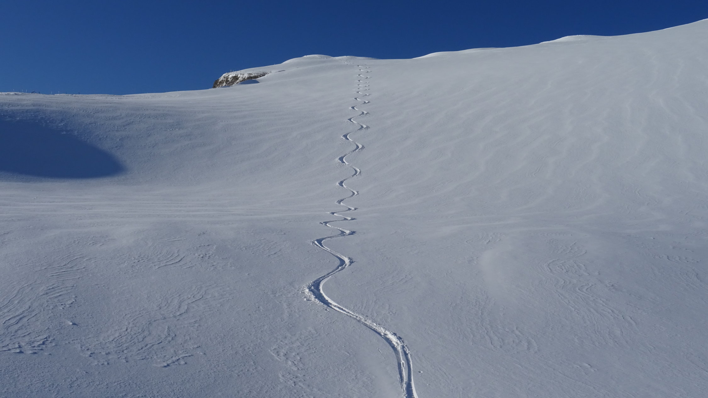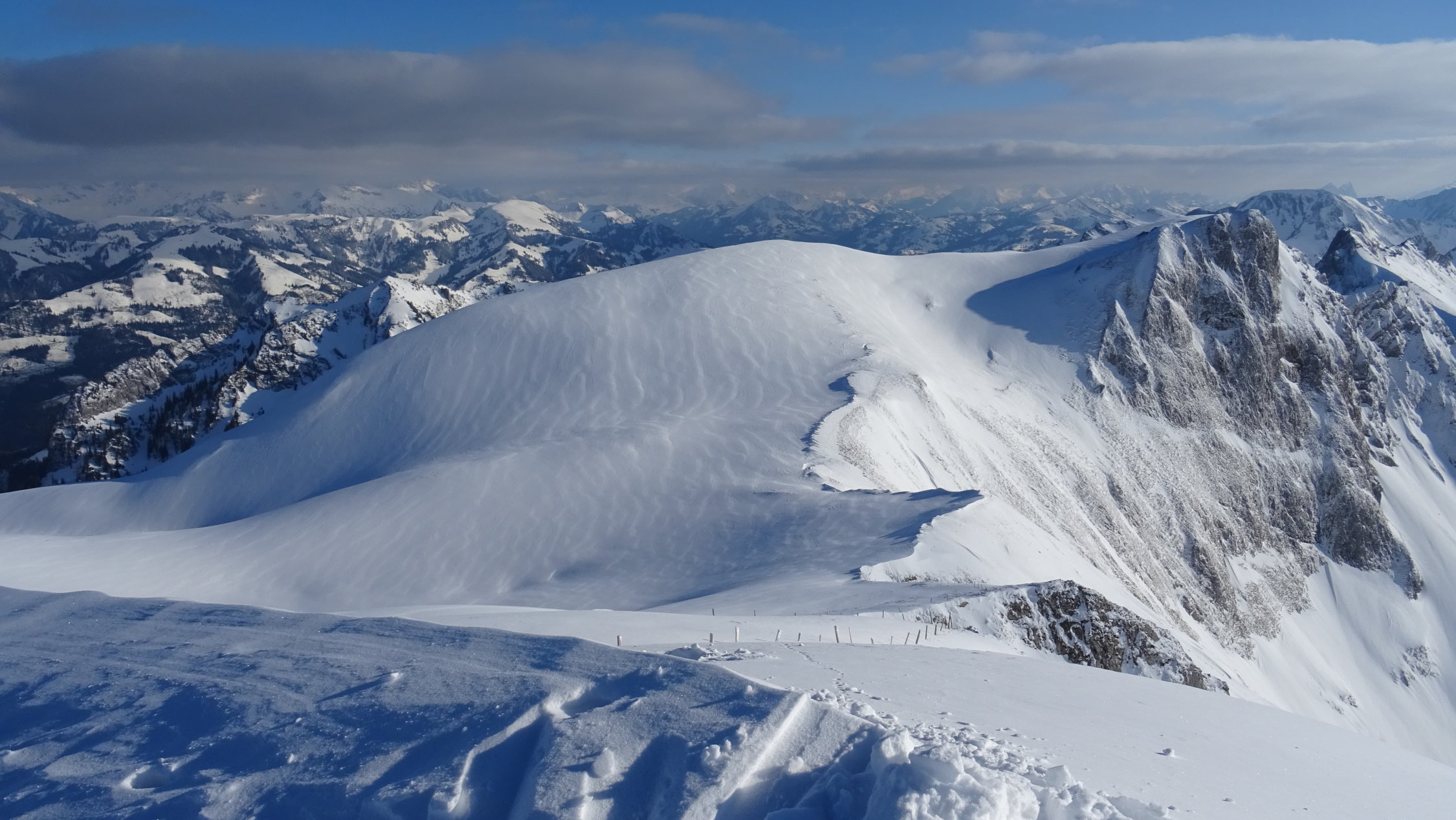Überall Pulverschnee teils stark windbearbeitet mit Wächten und Wellen