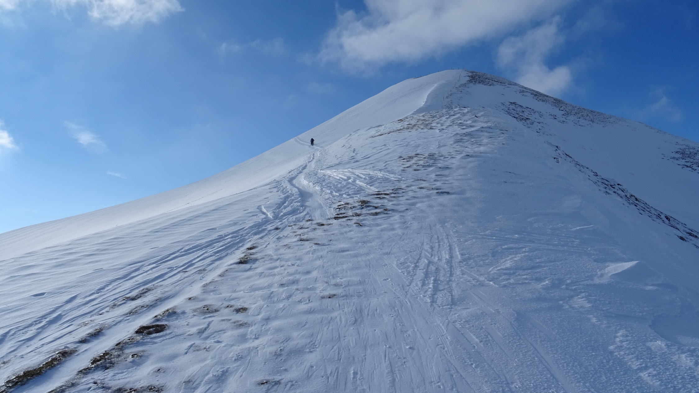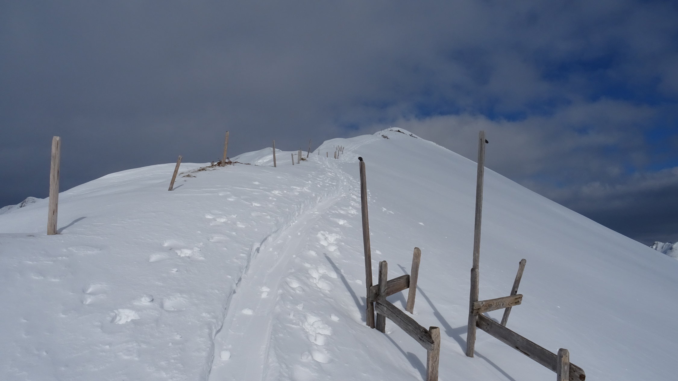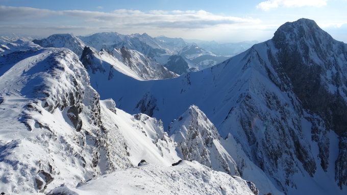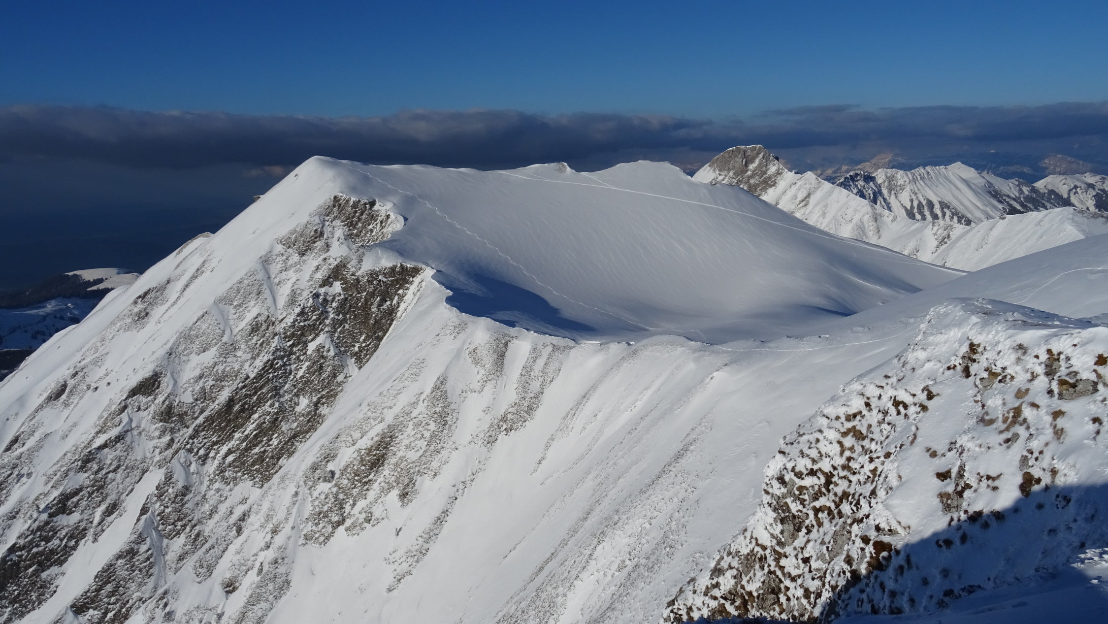 Überall Pulverschnee teils stark windbearbeitet mit Wächten und Wellen