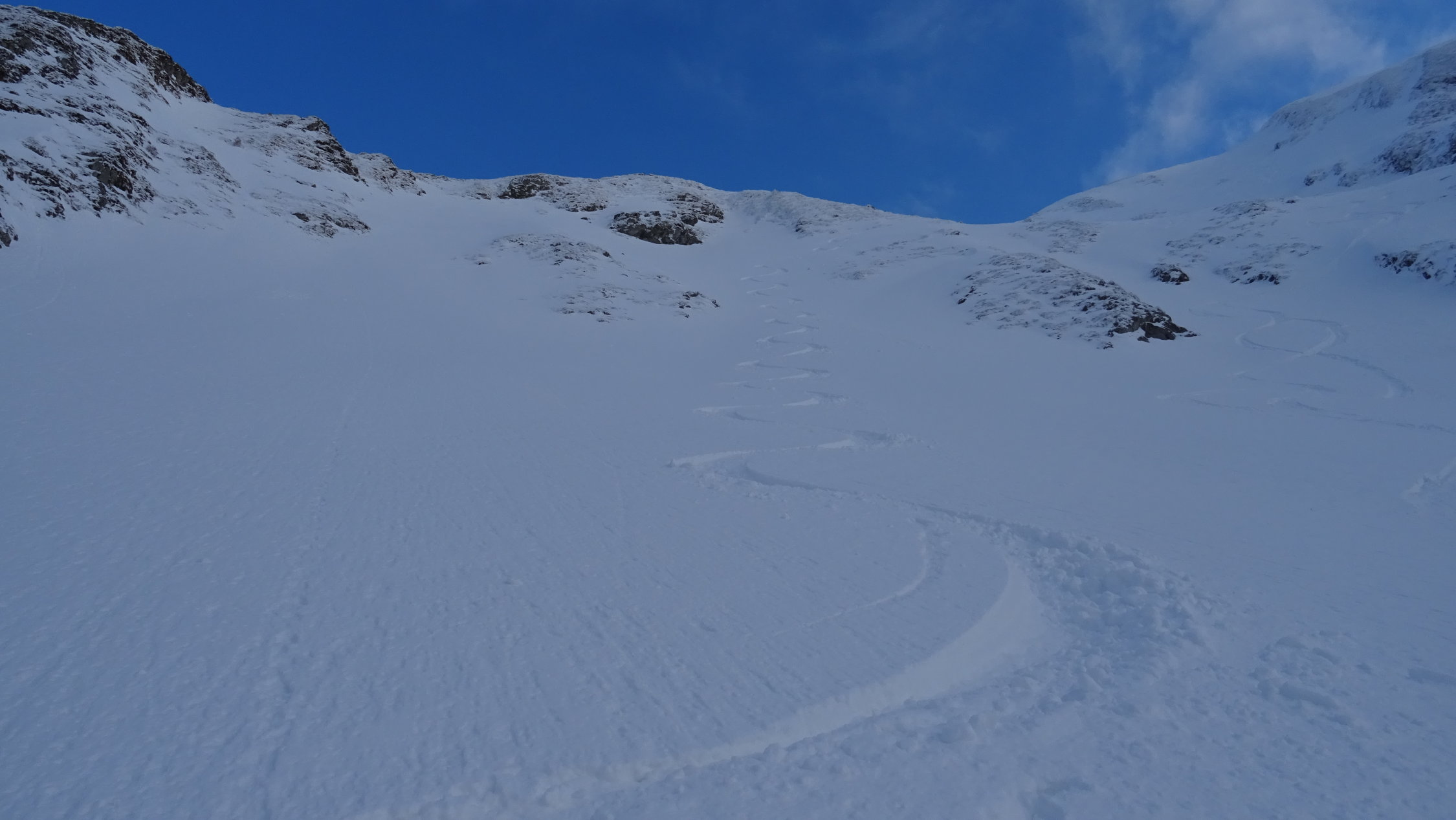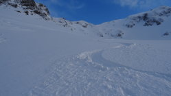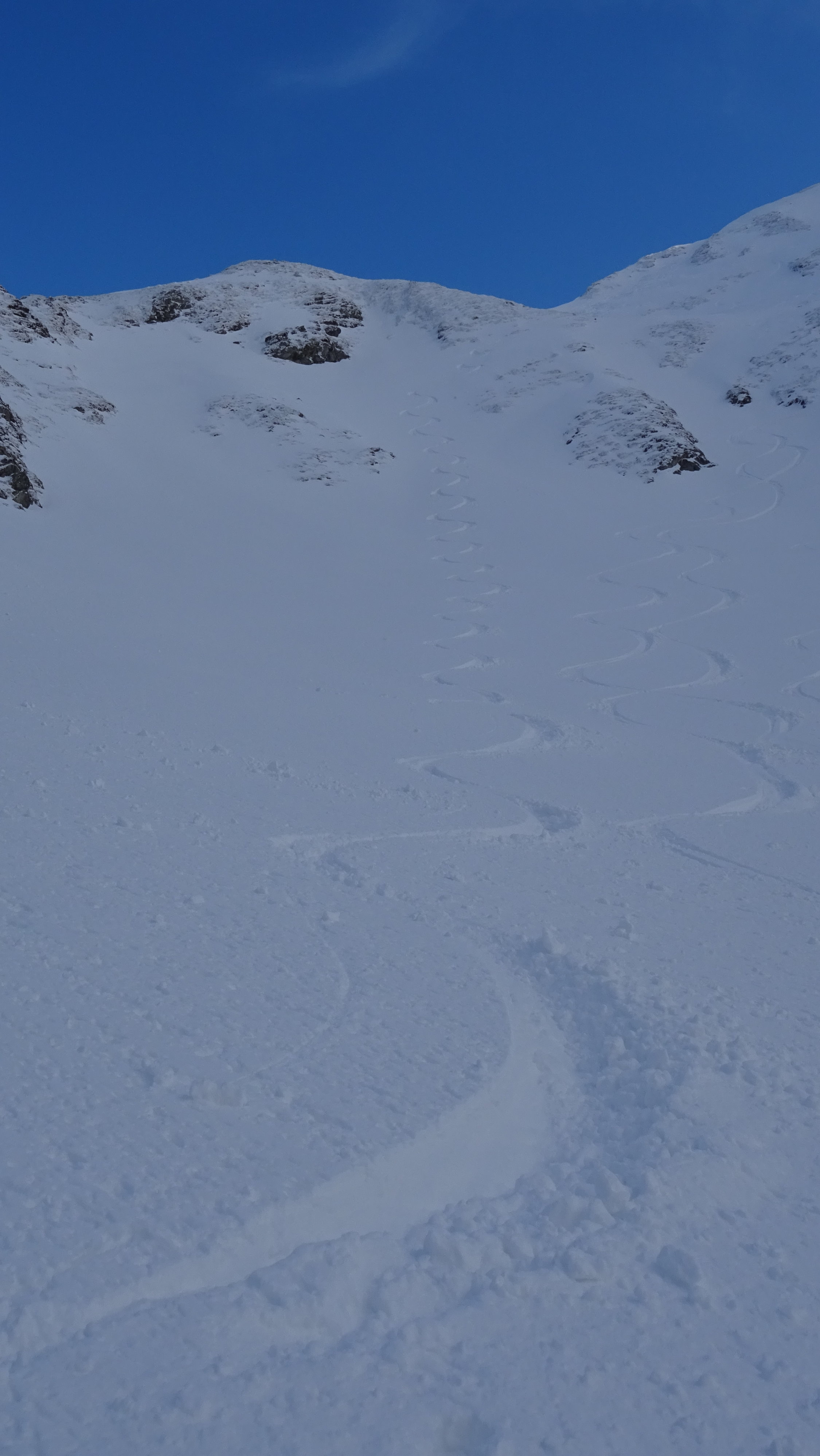Die Nordflanke hatte von heute 25 spuren drin aber ich habe noch ein Couli gefunden das 40-60cm Pulver hatte einfach der Hammer