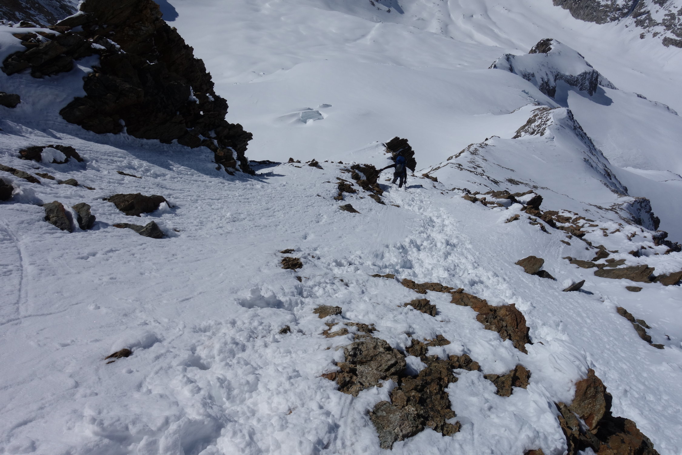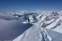 Dank wenig Altschnee und dem Neuschnee der Tage vorher, sind die Verhältnisse deutlich heikler als im letzten Jahr, großartige Tour. Die Oberaletschhütte ist einer der schönsten Stützpunkte die ich kenne, nicht zuletzt wegen Irene, der liebenswürdigen Hüttenwirtin, die die Hütte in ein kleines Paradies verwandelt hat und ihrer äußerst kreativen und reichhaltigen Küche...