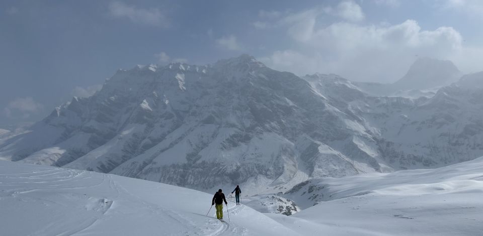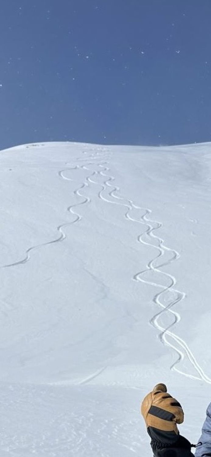 Mit etwas Neuschnee und Wind aus Südwest winterlicher Anstieg im Sonnenwolkenmix mit leichtem Schneefall bis zum Tomülgrat. Auf der alten Spur ging das Spuren leicht bis zum Gipfel. Traumpulver bei der nordseitigen Abfahrt. Nach Anfellen kurz zum Gipfel des Strätscherhorns. Leichter Pulver (10-20 cm), Harsch und windverpresster Schnee am Gipfel. Abfahrt Richtung Wannatobel zum Südende des Stausees. Auf der Loipe zurück zum Turrahus.