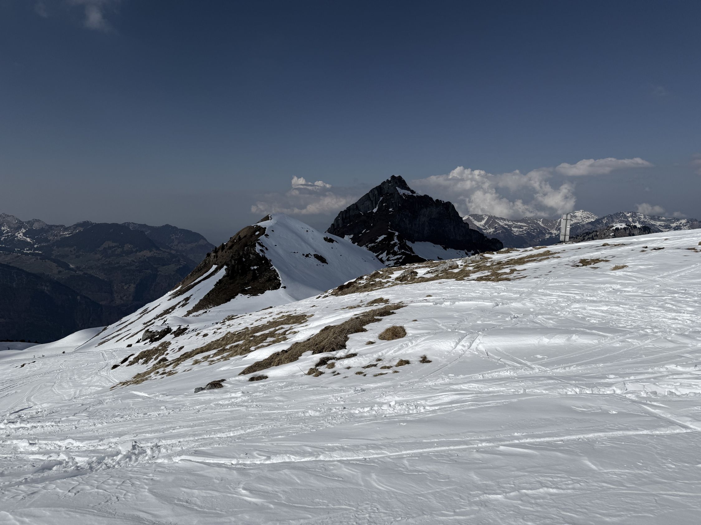 Als Ausgezeichnet auf Gipfelbuch angepriesen und dann ein Machbar vorgefunden. Beim Aufstieg sowie in der Anfahrt mehrere Tragestellen. Schnee ganz oben Presspulver und Hartschnee, anschliessend Bruch und ganz unten Nassschnee.