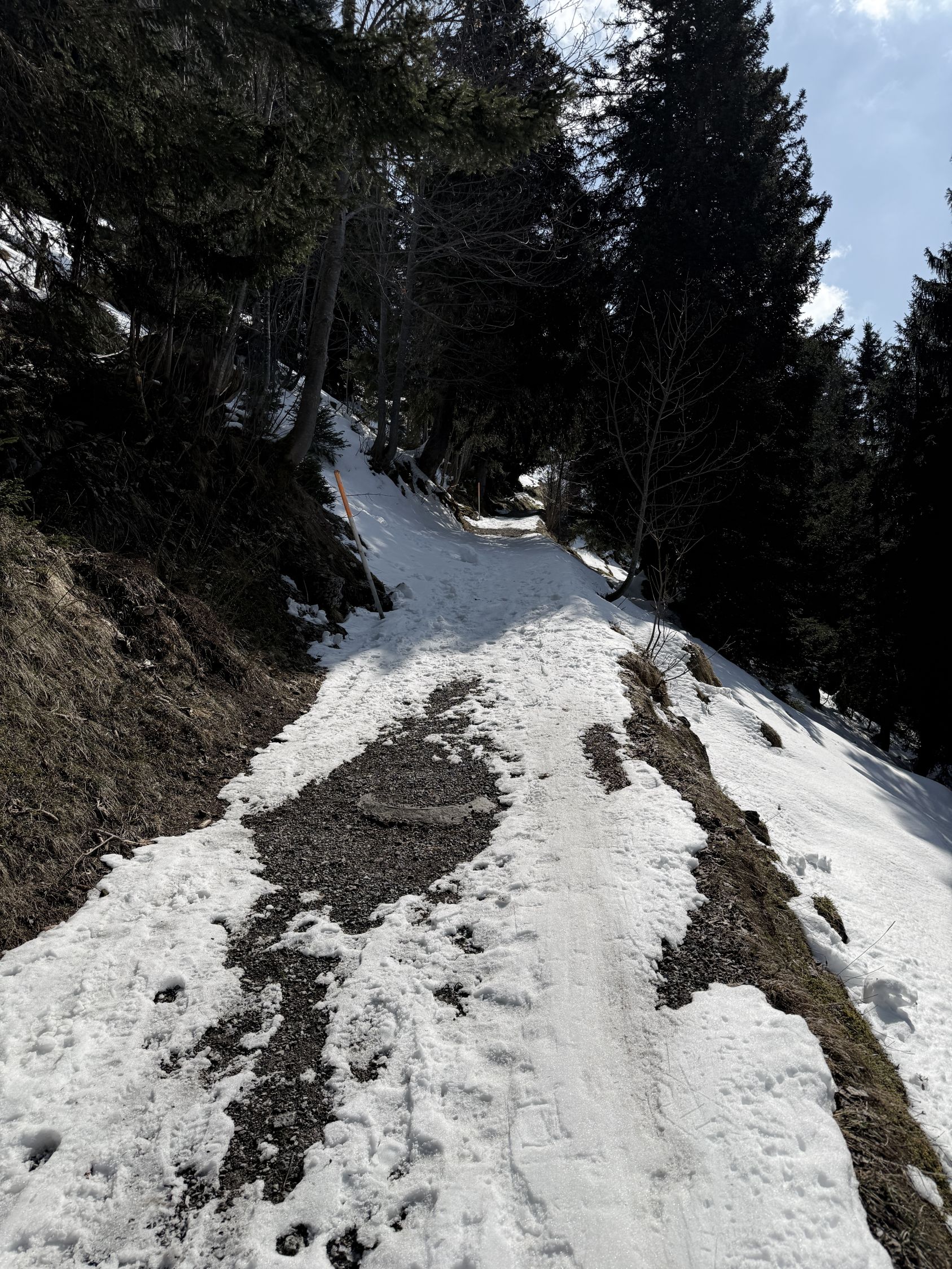 Die Tragestellen werden bis zum nächsten Schneefall noch etwas länger werden, die Tour kann aber noch länger ausgeführt werden.