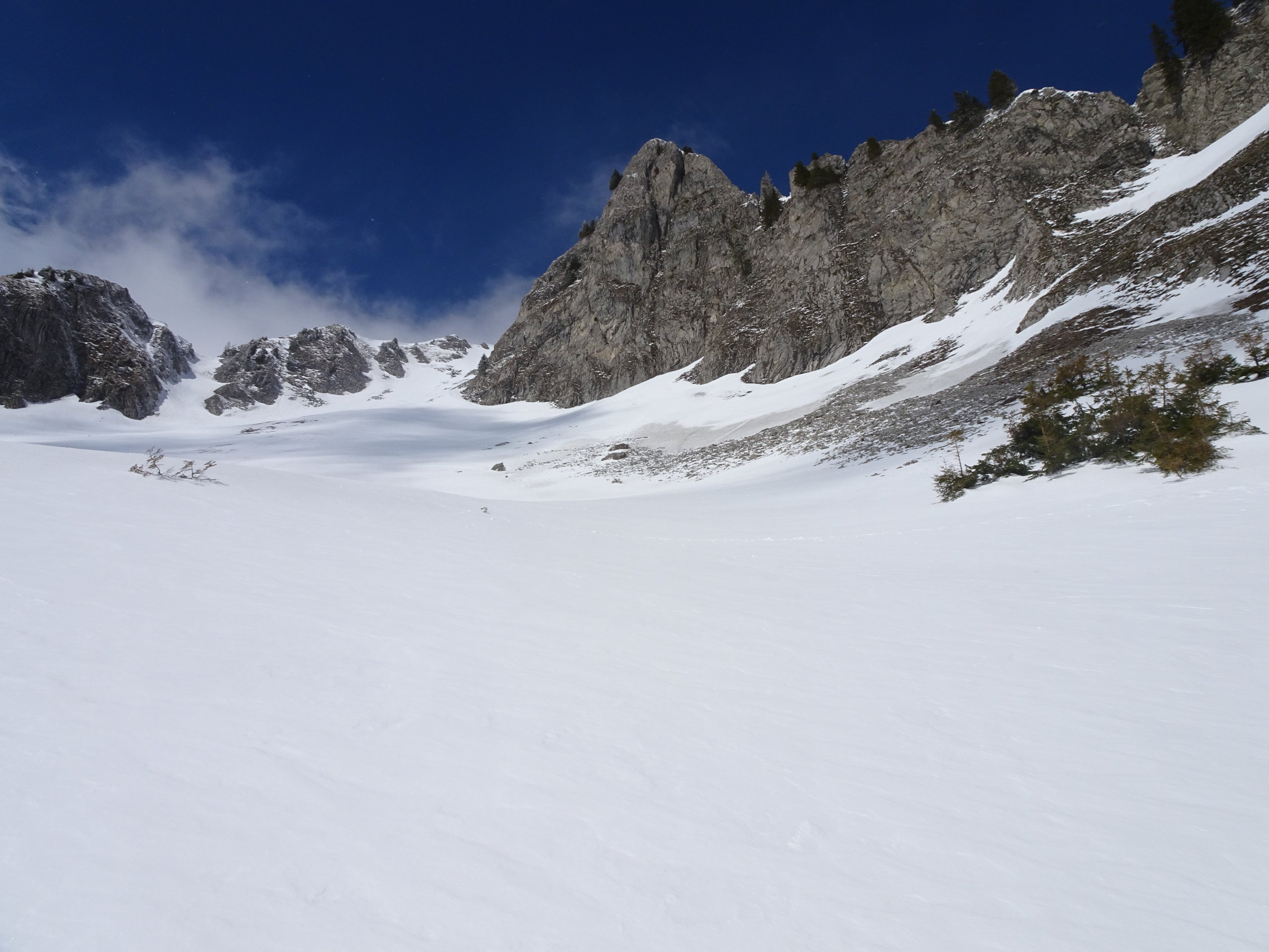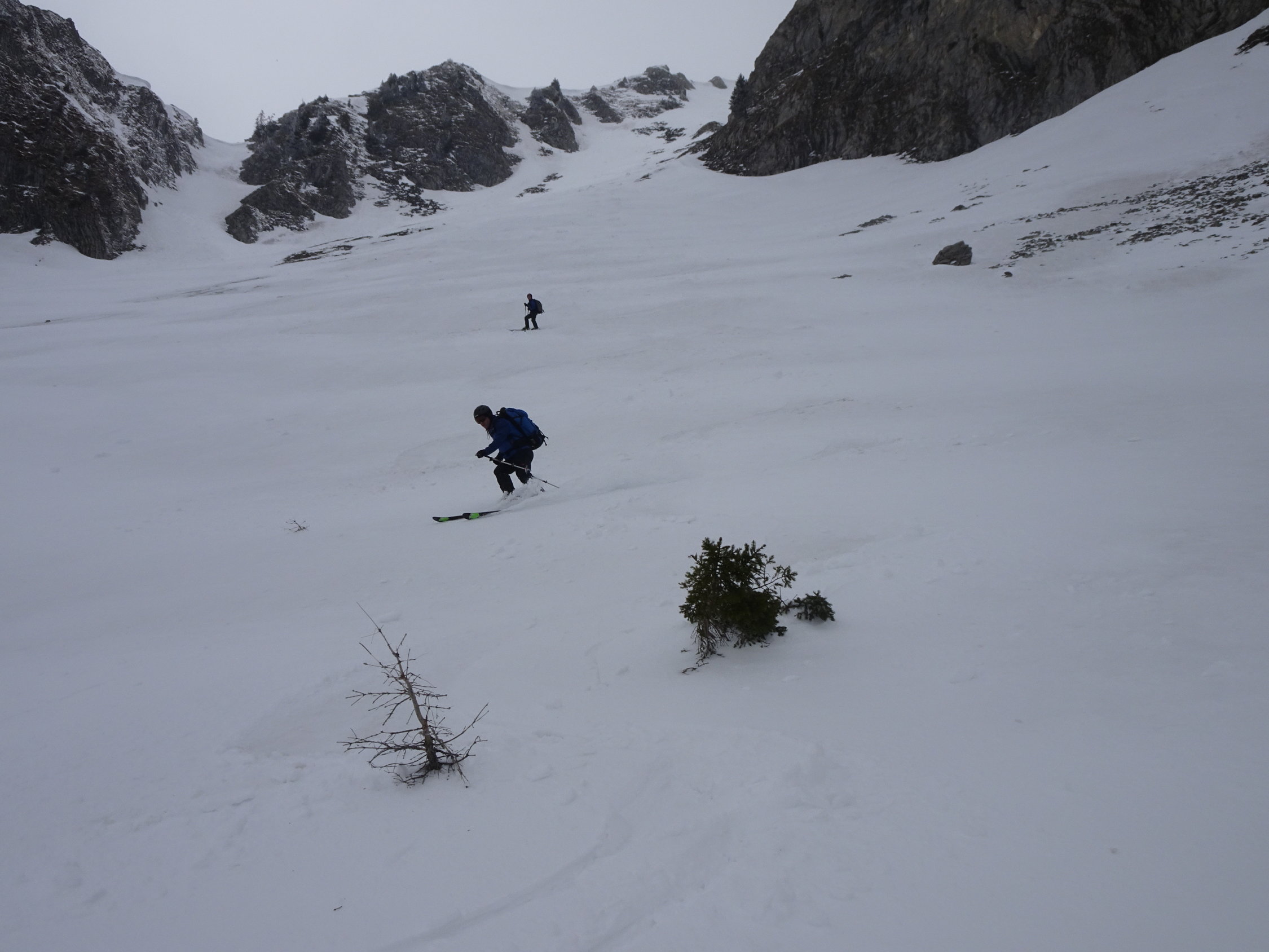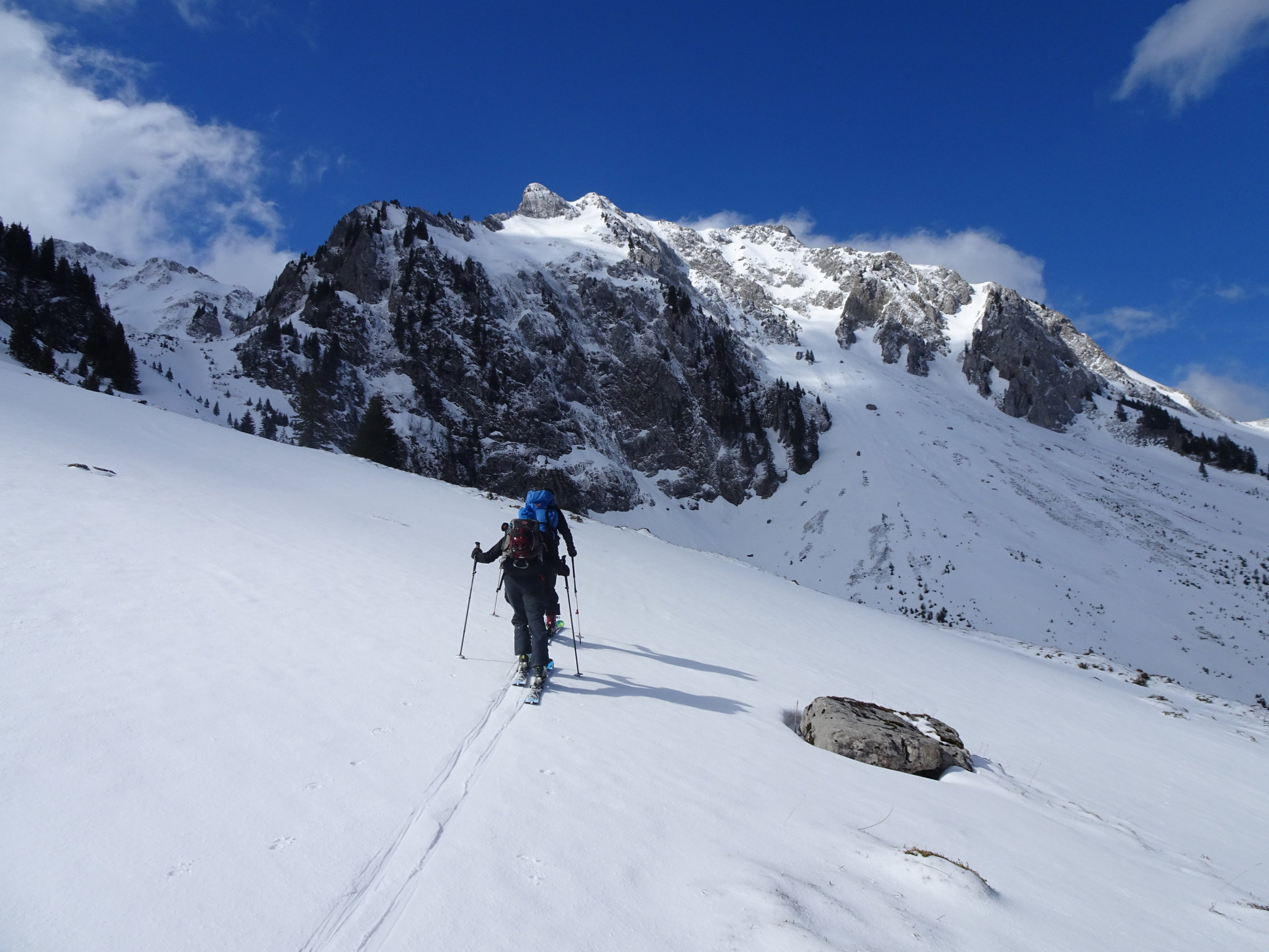 Da einer noch unbändigen Drang verspürte am Abend noch Arbeiten zu gehen, wählten wir ein nicht allzu fernes Ziel. Bei der Hengstkurve mit Blick in den Hengstschlund sahs aber mit dem Schnee düster aus. Es sollte sich aber lohnen. Wir fuhren bis zum Fahrverbot ca.1360m. Kurzes Skitragen dem Strässchen entlang bis ca.1450m(vor Alp Seeberg). Danach eine tolle Sache!